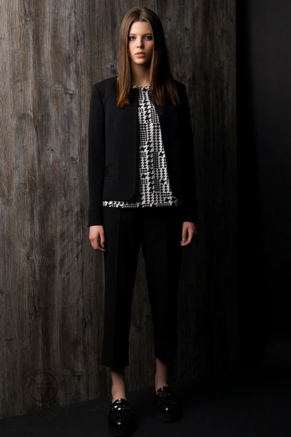 Классические брюки укороченные с высокими манжетами по низу из поливискозной костюмной ткани. Застежка спереди на брючную молнию и потайной крючок на поясе, с боковыми наклонными карманами.