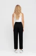 Детали: высокая посадка, притачной пояс со шлевками, задняя часть пояса эластичная- с резинкой, застежка на молнию и пуговицу, боковые карманы, передние половины с двумя складками