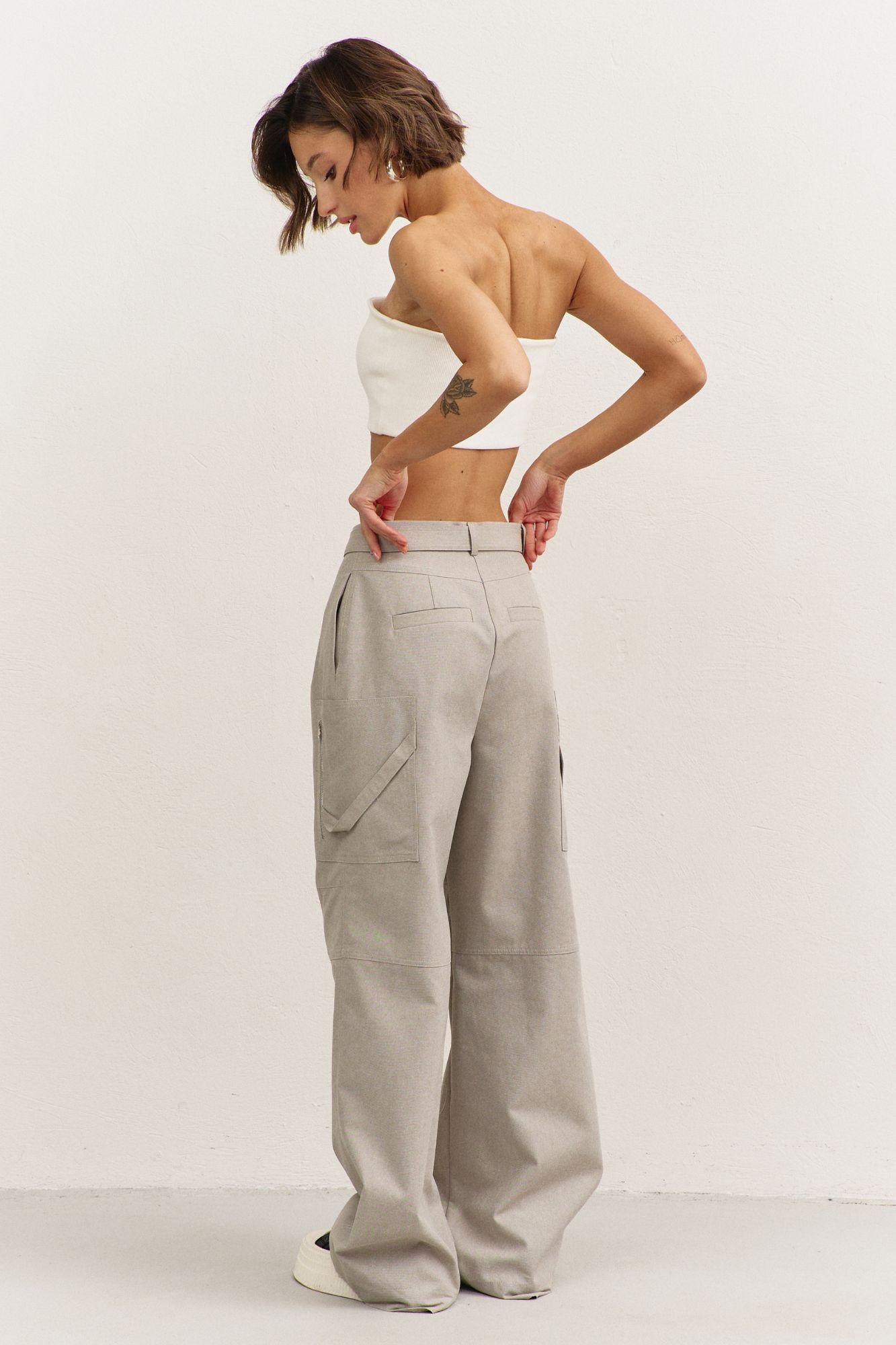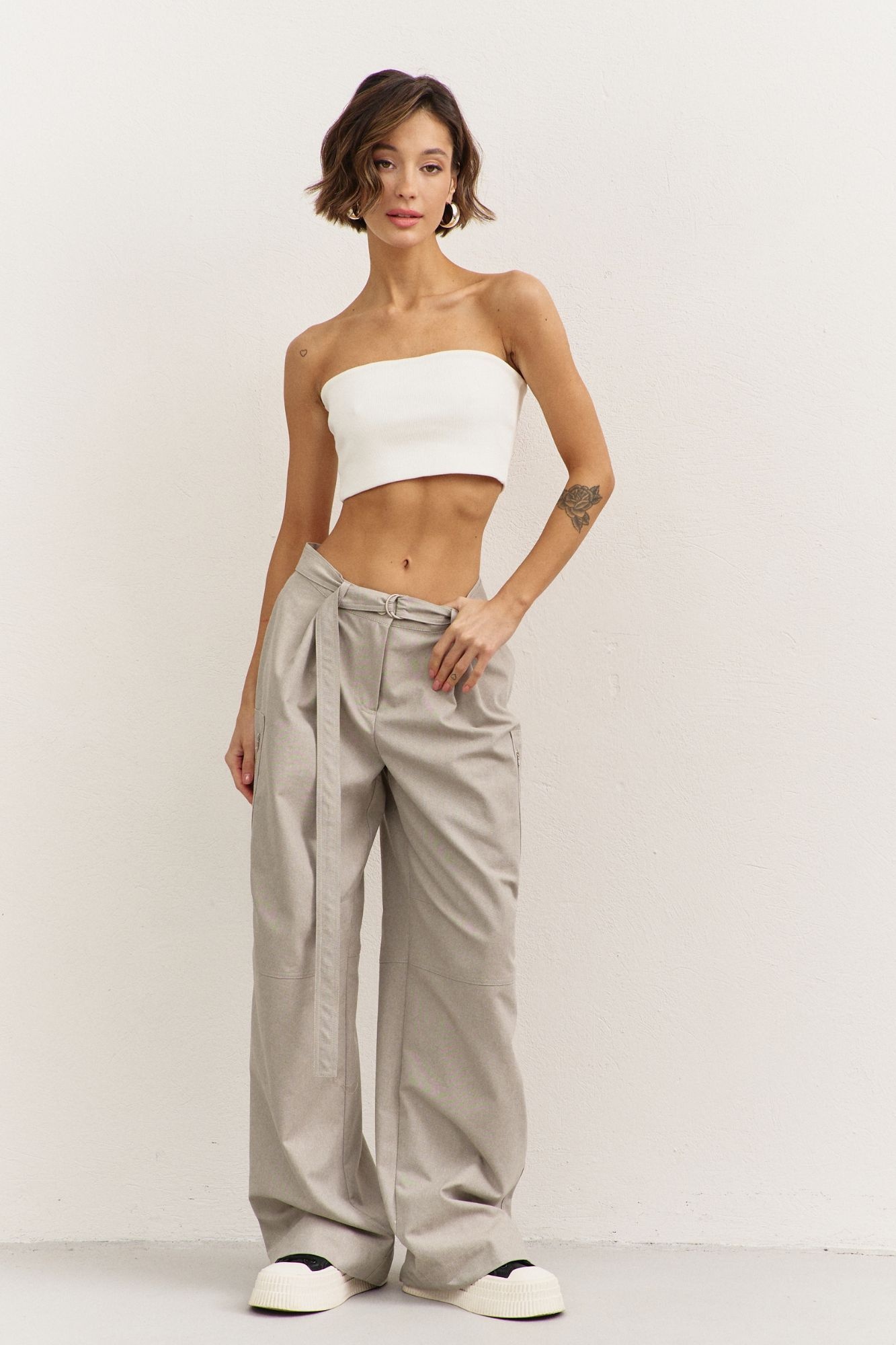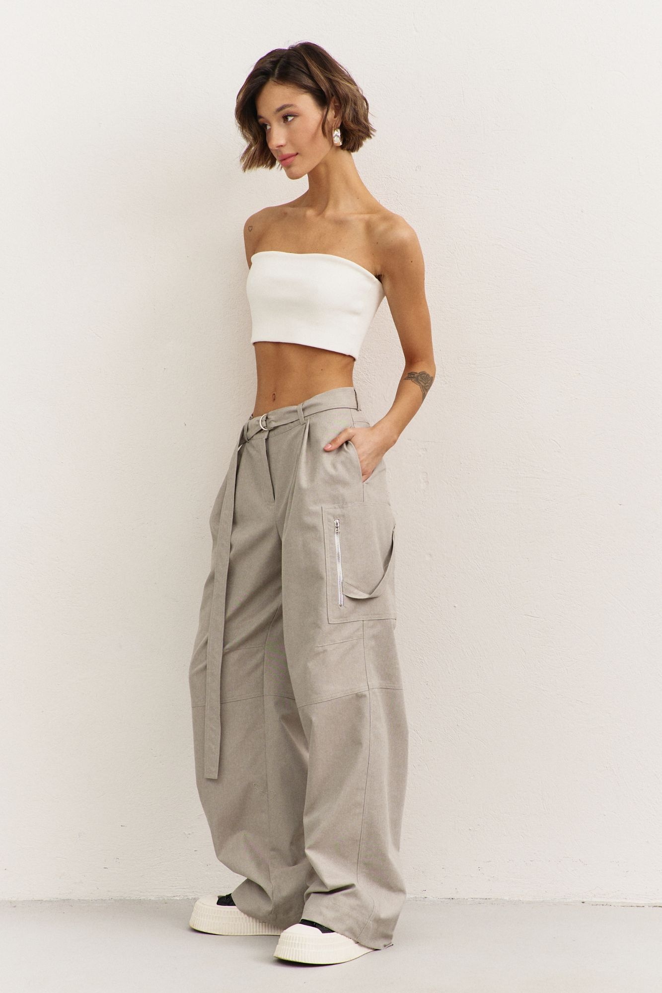 Брюки 1486 RINKA — это стильные женские брюки свободного кроя, которые идеально подойдут для повседневного гардероба. Коллекция бренда RINKA сочетает в себе комфорт и стиль благодаря высокому качеству материала — джинс с добавлением спандекса, обеспечивающие легкость и комфорт в носке. Модель отличается наличием накладных карманов с декоративной молнией и съемным поясом с полукольцами, что добавляет изюминку в дизайн. Обратите внимание на застежку на тесьму-молнию и притачной пояс, которые подчеркивают оригинальный фасон. Универсальный бежевый цвет делает брюки идеальными для носки в любое время года, а свободный силуэт дарит свободу движений. Эти брюки станут отличным выбором для создания стильных образов.