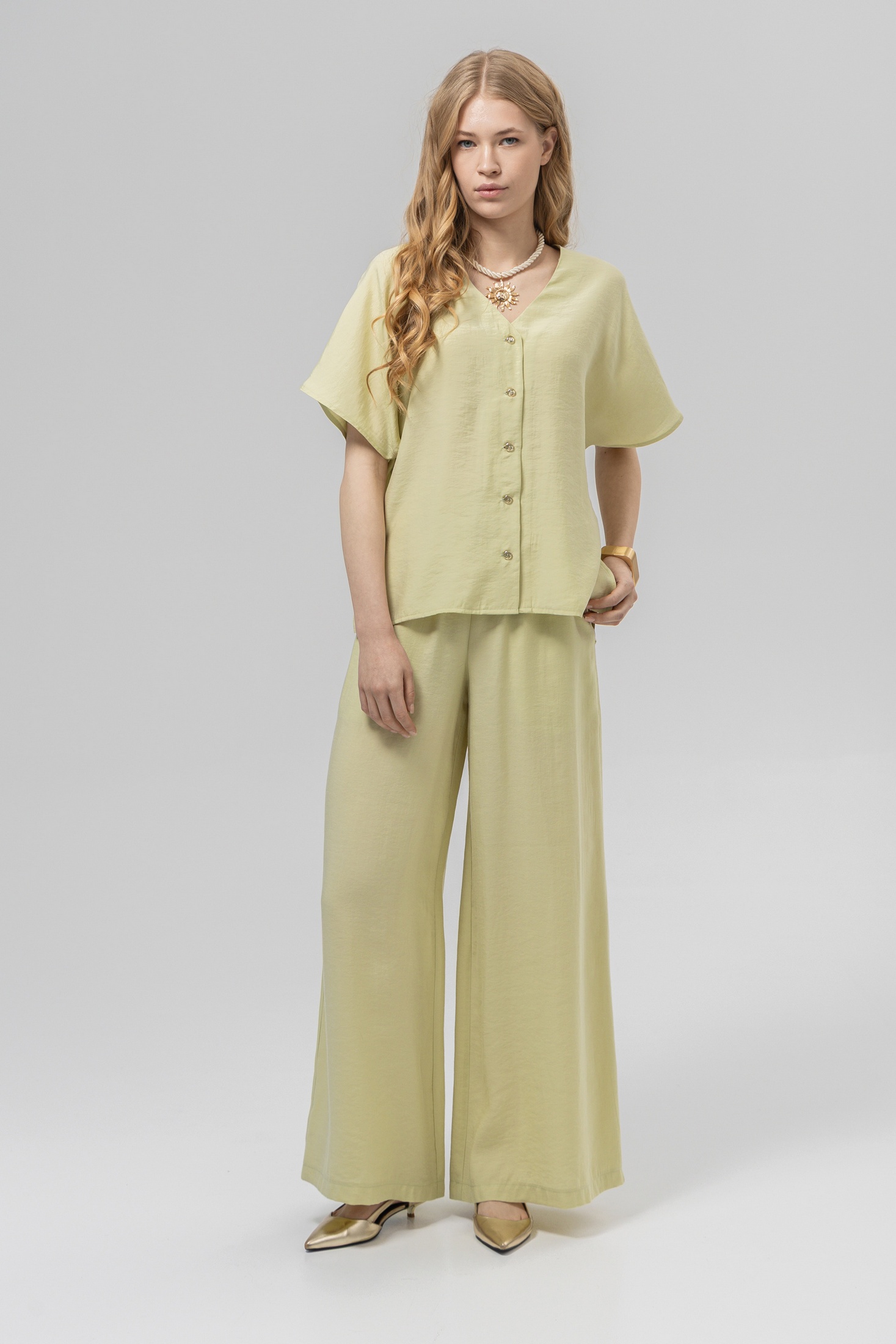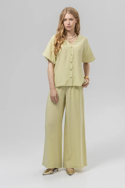 Брюки РТ0134-ВИ4 светло-оливковый Romgil – это стильное дополнение к вашему весенне-летнему гардеробу. Коллекция бренда Romgil предлагает свободный крой, который обеспечивает комфорт и свободу движений. Изготовленные из качественной вискозы с добавлением полиэстера, эти брюки подходят для теплого времени года благодаря своей легкости и дышащим свойствам. Светло-оливковый, голубой и черный цвета вносят свежесть в ваш повседневный и офисный стиль. Брюки легко комбинируются с различной одеждой, создавая модные образы на любой случай.