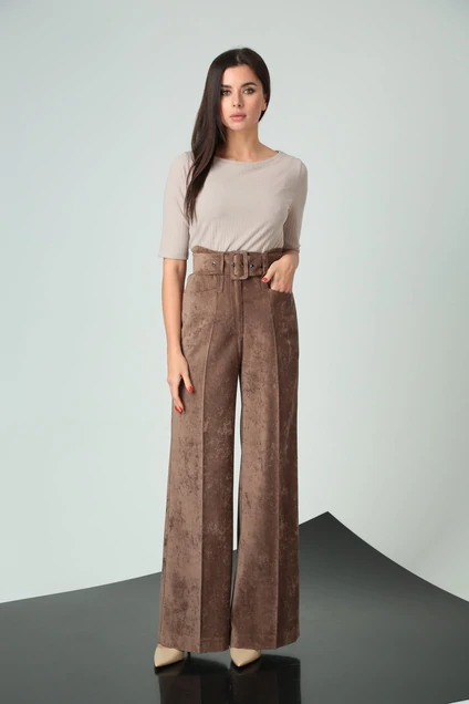 Классические брюки-клеш от бедра из штруксовой ткани помогут скорректировать фигуру, придав ногам дополнительной длины, а бедрам – стройности. На передних половинах – карманы с подрезным бочком, удобные и функциональные. На задних – вытачки и клапаны. Брюки-клеш с застежкой спереди на молнию. Высокая посадка брюк и удобный широкий пояс подчеркивают талию. К изделию прилагается съемный пояс из основной ткани с обтяжной пряжкой.