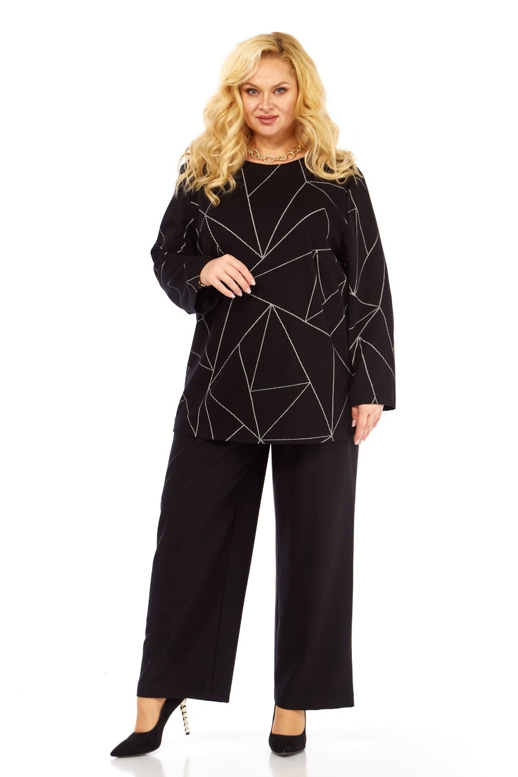 Брюки широкие, с поясом на резинке. Посадка стандартная. Длина брюк по боковому шву (без учёта пояса) 103 см. Брюки выполнены из костюмно-плательной ткани.