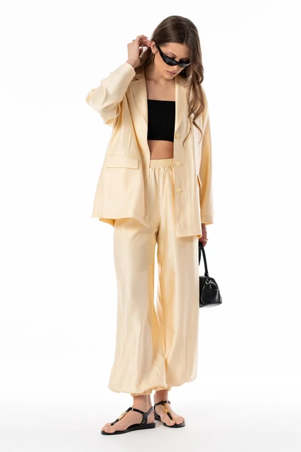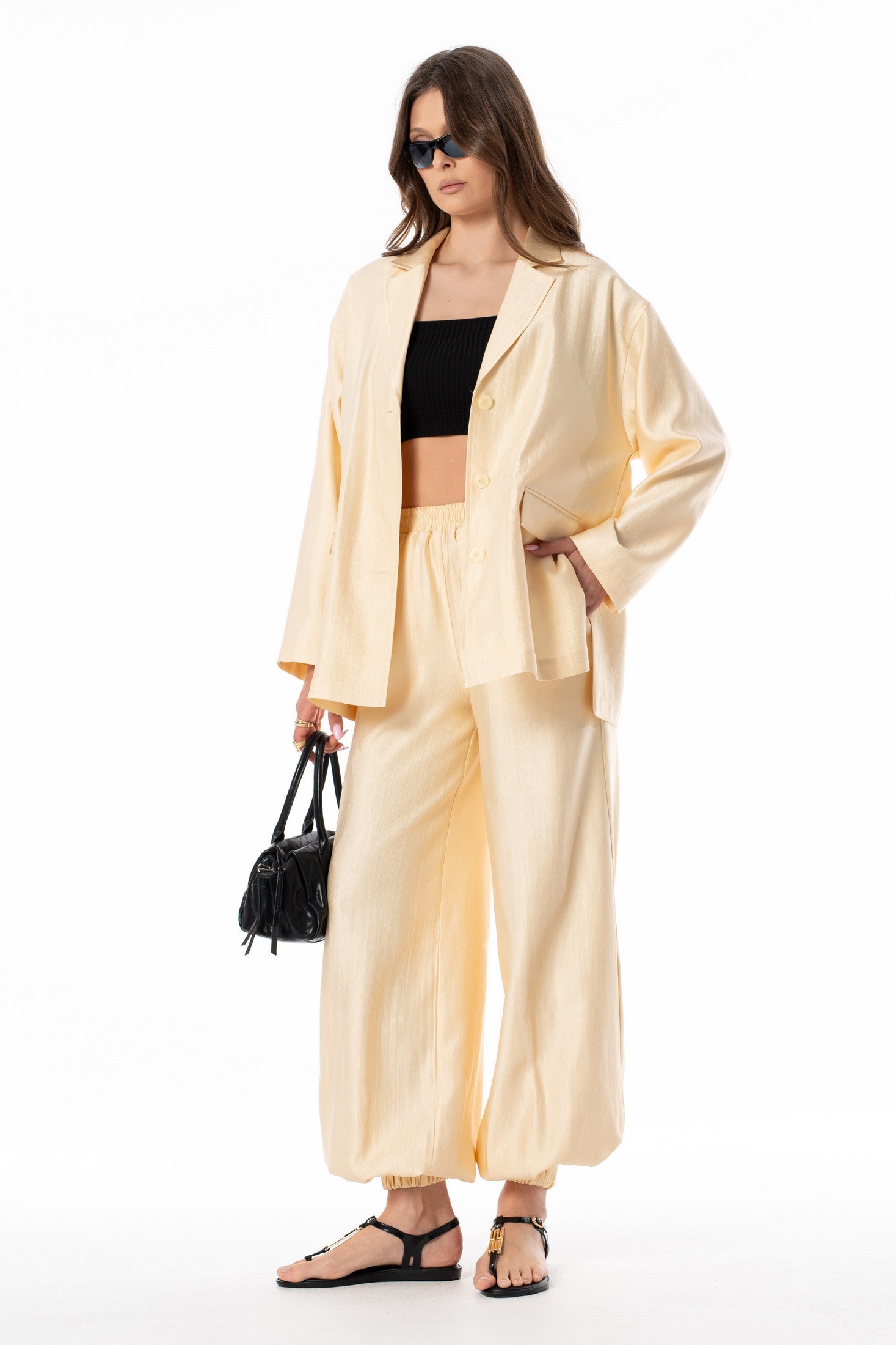 Брюки 3527 желтый SILVERSPICE — это уникальное сочетание современного стиля и комфорта. Коллекция бренда SILVERSPICE предлагает удобные и модные брюки 'алладины', выполненные из смеси вискозы, полиамида и полиэстера. Шелковистая ткань обеспечивает комфорт и легкость в носке, а широкая посадка и пояс на резинке добавляют брюкам универсальности. Яркий желтый цвет делает модель идеальной для теплых сезонов. Брюки оснащены боковыми карманами и резинкой внизу, что создает эффектный образ. Длина брюк с поясом составляет 106 см, а ширина по низу — 69 см, что придает универсальность и стильный вид. Эти брюки отлично подойдут для повседневного ношения и городских прогулок.