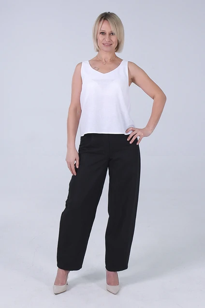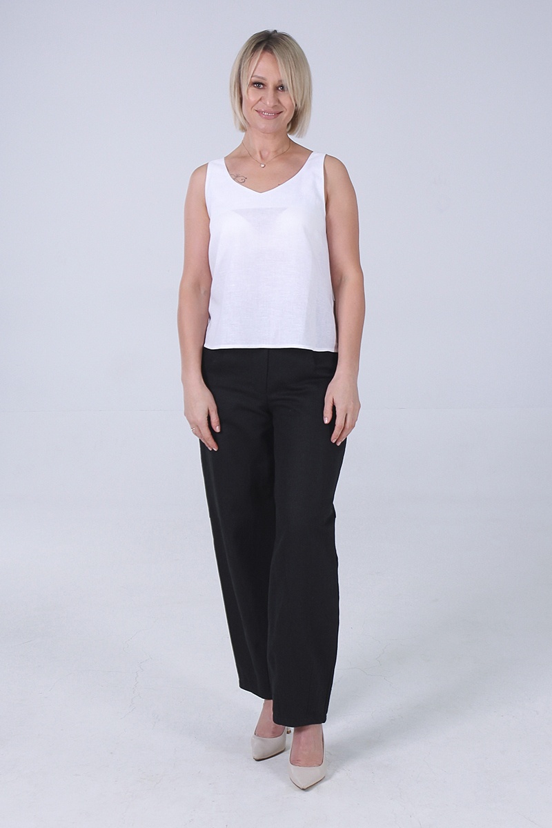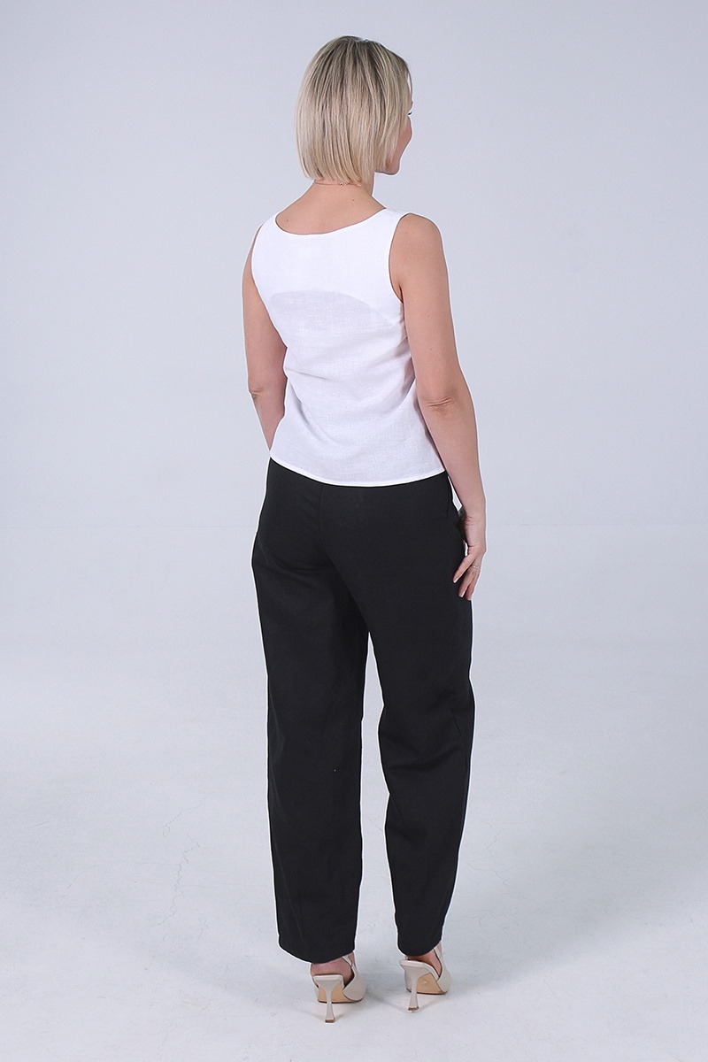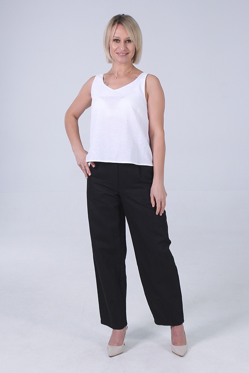 Льняные женские брюки выполнены из качественного материала, плотные, держат форму. Застегиваются на молнию, сзади пояс на резинке. Модель очень удобная, комфортная, в боковых швах карманы. Брюки идеально подойдут как для офисного, повседневного стиля, так и для вечернего образа.