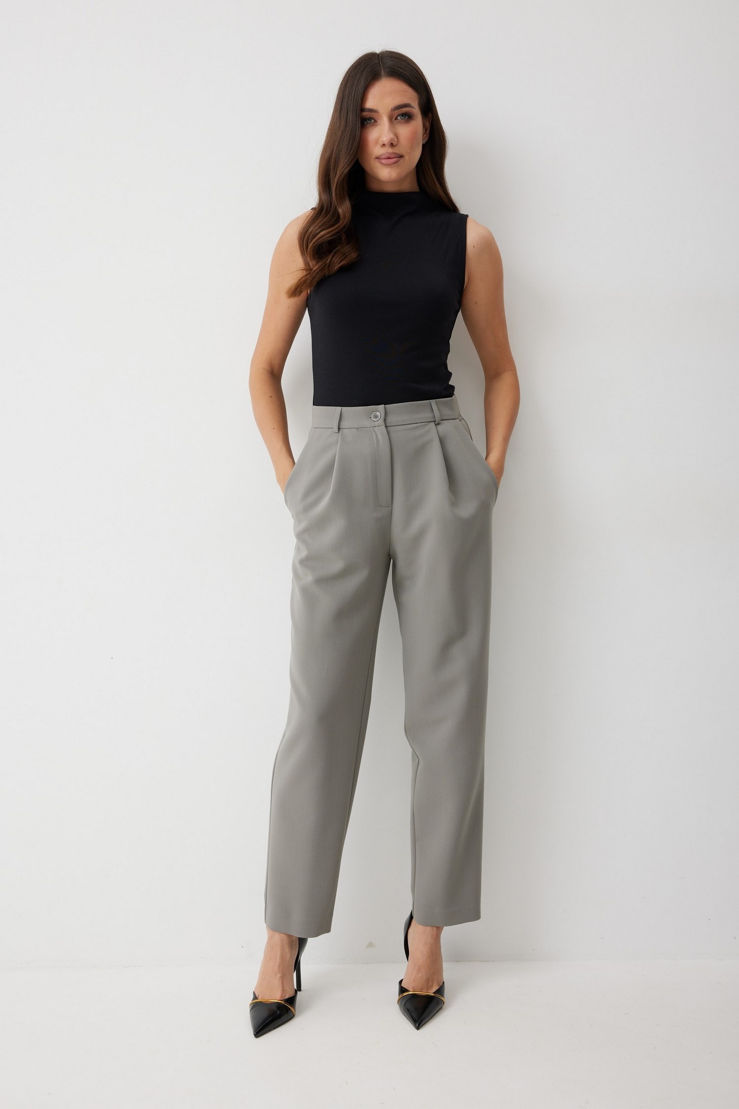 Классические женские брюки с высокой посадкой. Эта модель выполнена из качественной костюмной ткани, которая сохраняет форму и выглядит безупречно на протяжении всего дня. Брюки с притачным поясом со шлевками, позволяющими дополнить образ любимым ремнем, и классической застежкой на петлю, пуговицу и тесьму-молнию в гульфике. Для комфорта предусмотрены функциональные карманы с отрезным бочком в боковых швах. Слегка зауженный к низу силуэт является самым актуальным и универсальным, отлично сочетаясь как с каблуками, так и с лоферами или ботинками.