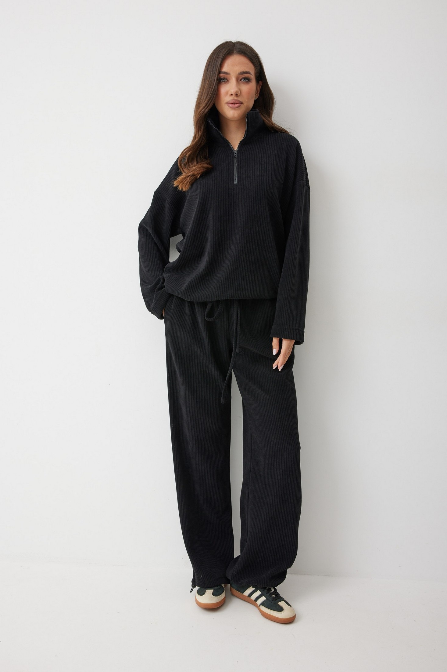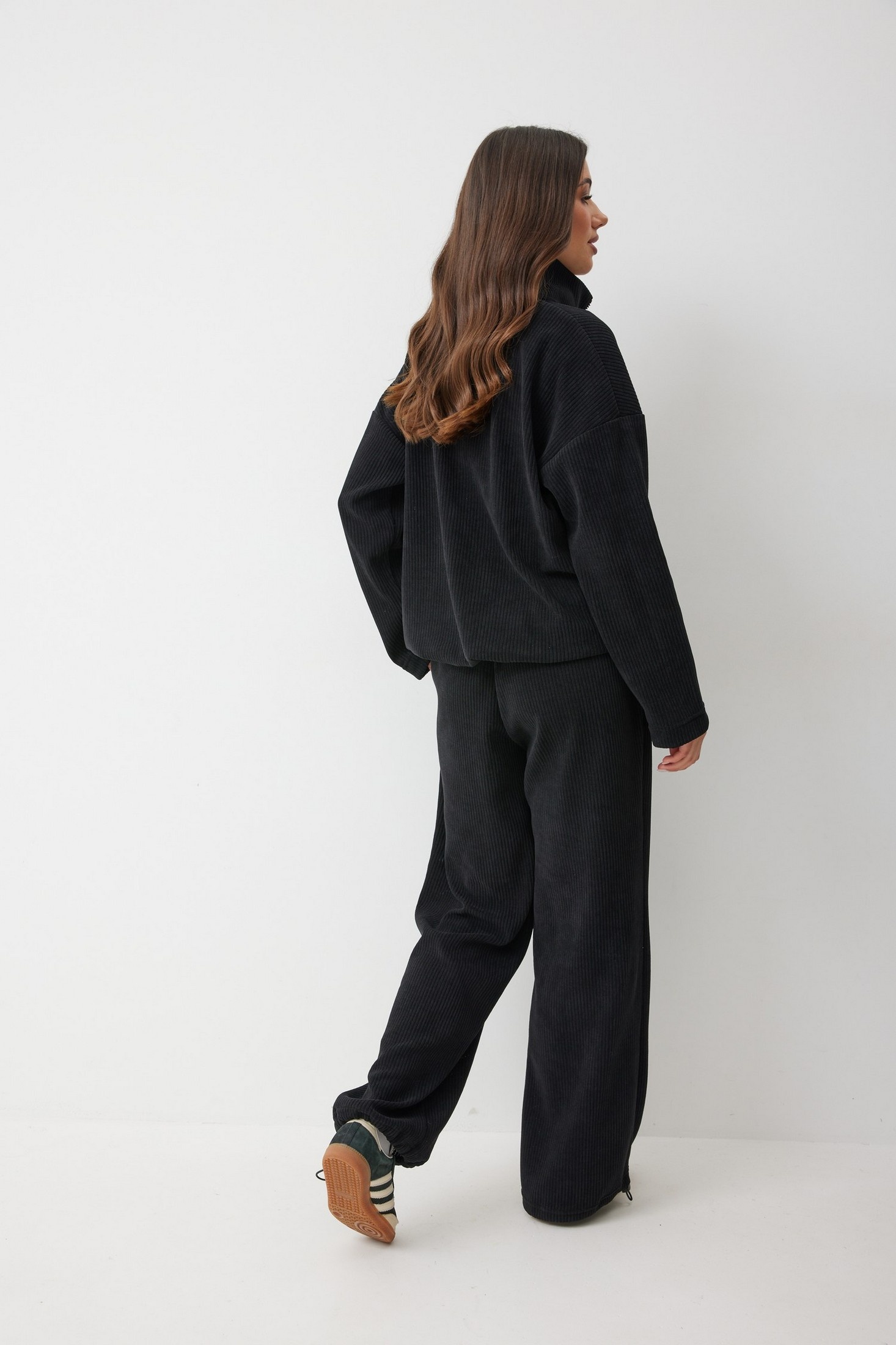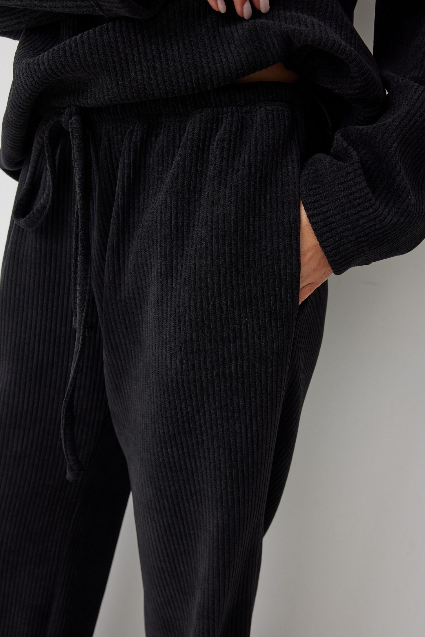 Женские брюки в актуальном спортивном стиле. Модель выполнена из мягкого трикотажного полотна с широким рубчиком, что добавляет фактурности и мягкости. Свободный силуэт гарантирует максимальный комфорт и непринужденный вид.