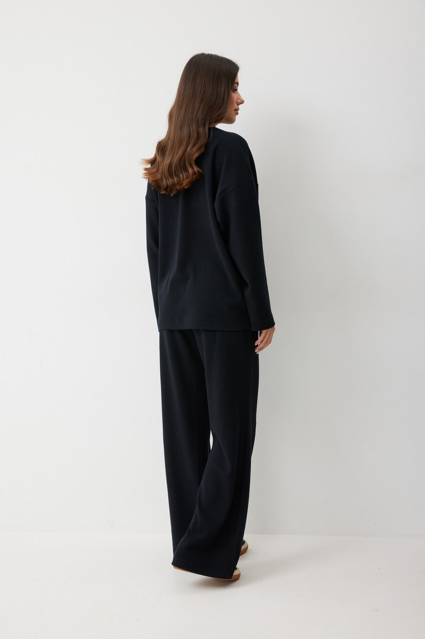 Женские брюки в актуальном спортивном стиле. Модель выполнена из мягкого трикотажного полотна с рубчиком, что добавляет фактурности и мягкости. Свободный силуэт гарантирует максимальный комфорт и непринужденный вид.