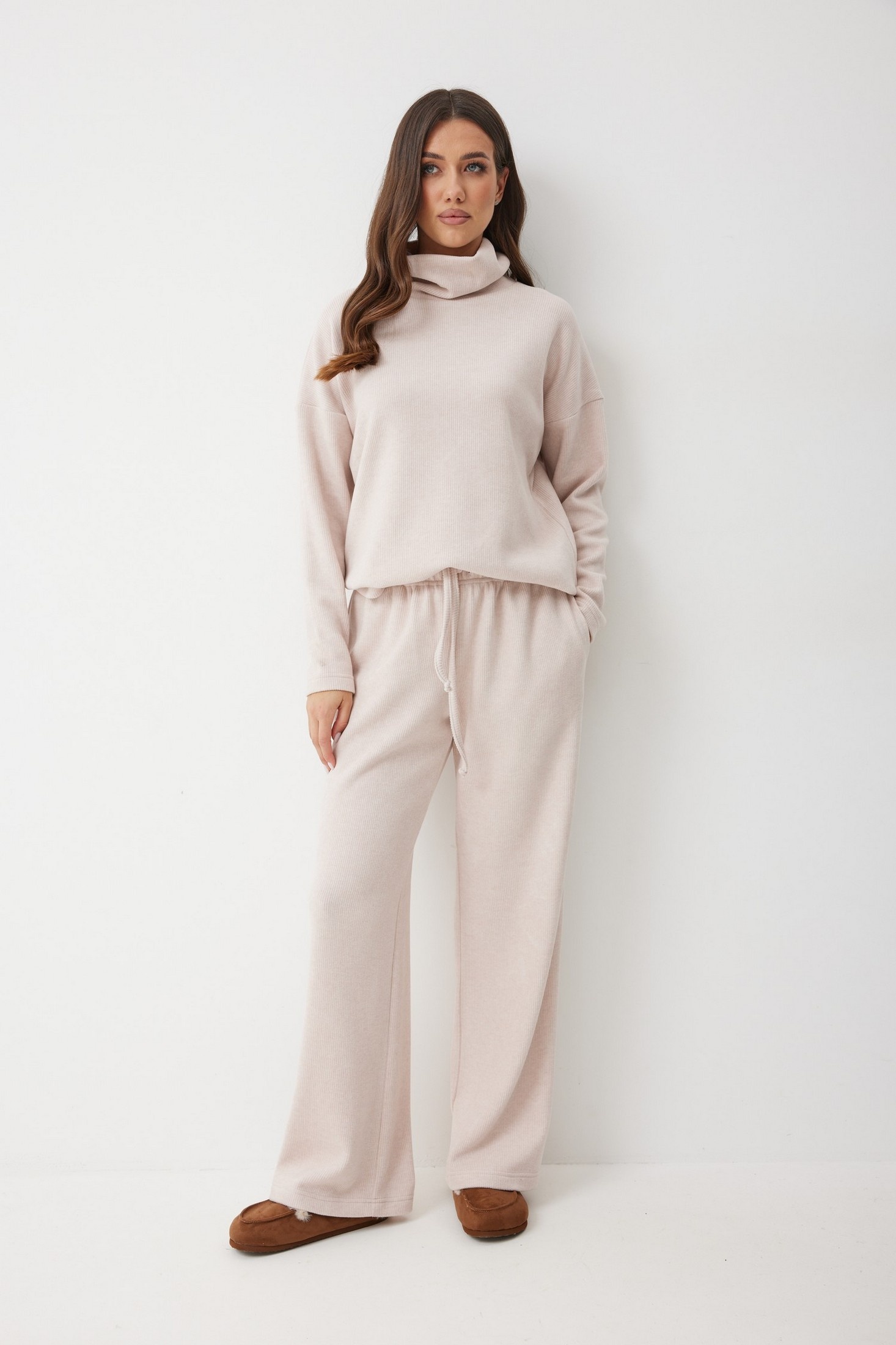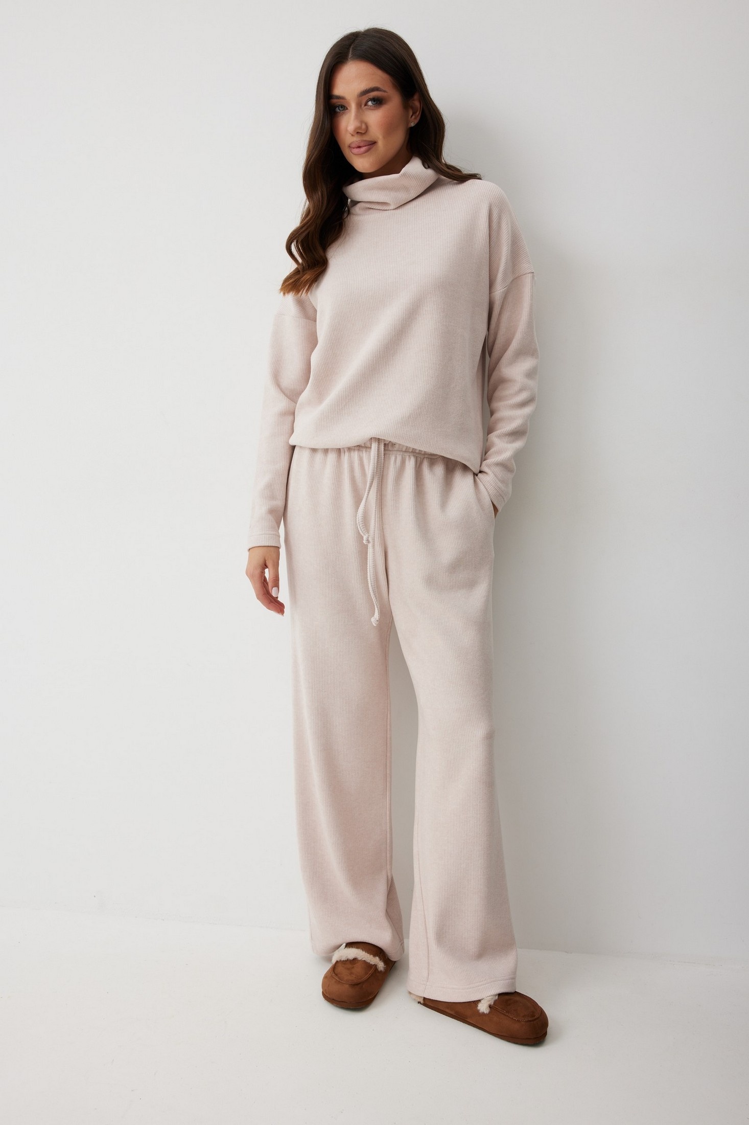 Женские брюки в актуальном спортивном стиле. Модель выполнена из мягкого трикотажного полотна с рубчиком, что добавляет фактурности и мягкости. Свободный силуэт гарантирует максимальный комфорт и непринужденный вид.