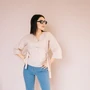 Брюки женские слегка заужены книзу из джинсовой ткани; на притачном поясе со шлёвками; спереди застёжка на молнию и петлю-пуговицу. На передних половинках карман овальной формы. Сзади накладные карманы.