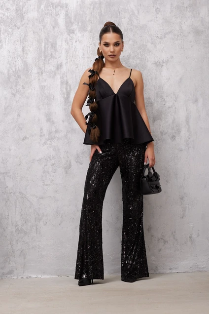 Брюки клеш из пайеточной ткани. Застежка в боковом шве на потайную молнию. Брюки на подкладке.ф