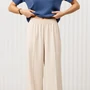 Дизайн: брюки свободного кроя с высокой посадкой и резинкой на поясе, что делает их удобными и практичными. Гладкая ткань и классический крой подчеркивают стиль и элегантность;