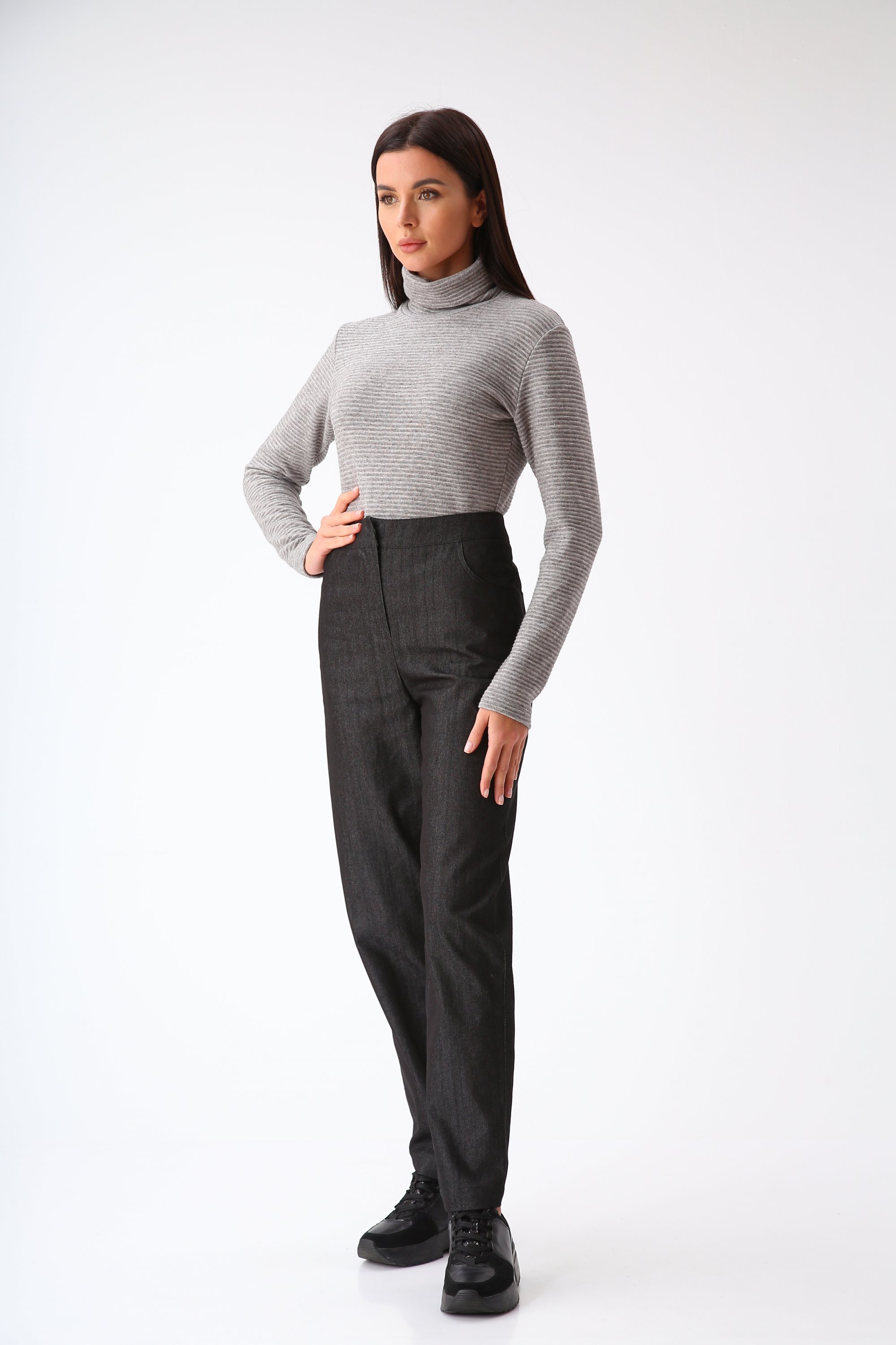 Женское боди прилегающего силуэта с втачным одношовным рукавом с высоким воротником-стойкой и застежкой внизу. Ткань-трикотажное полотно.