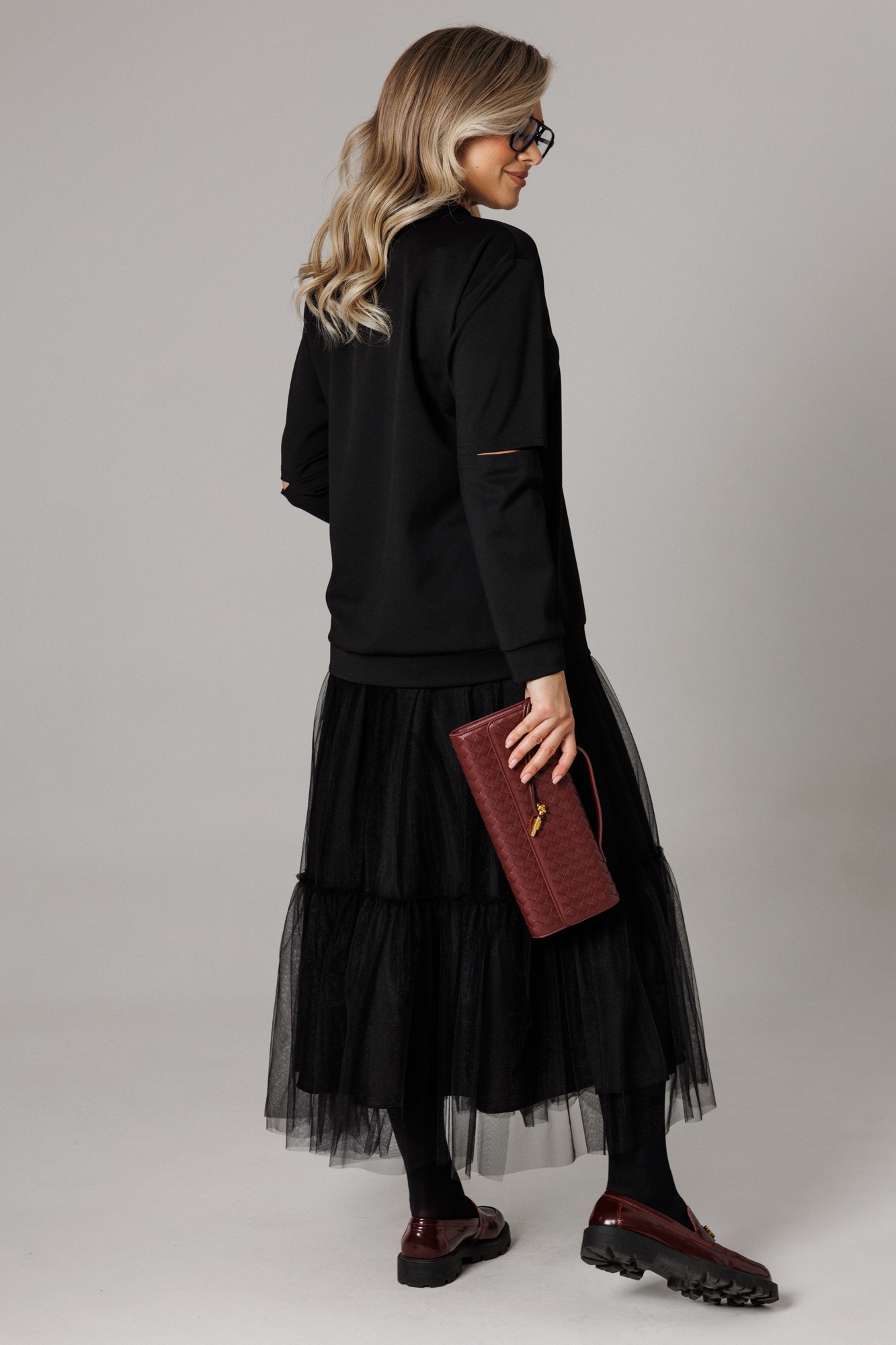 Оригинальный джемпер от бренда Anastasia, идеальный для любого случая. Этот джемпер сочетает в себе элегантность и комфорт, что делает его подходящим как для повседневной носки, так и для праздничных мероприятий. Джемпер оверсайз из трикотажного полотна. Прямого силуэта со спущенным плечом. Воротник-стойка. По рукаву идет подрез с разрезом. Низ рукава и низ джемпера - на манжете. Джемпер лекго сочетается с любыми низами: брюки, джинсы, юбка - все это позволит создавать различные образы на разные случаи. Длина по спинке 68см. Длина рукава (с манжетой): 60см.