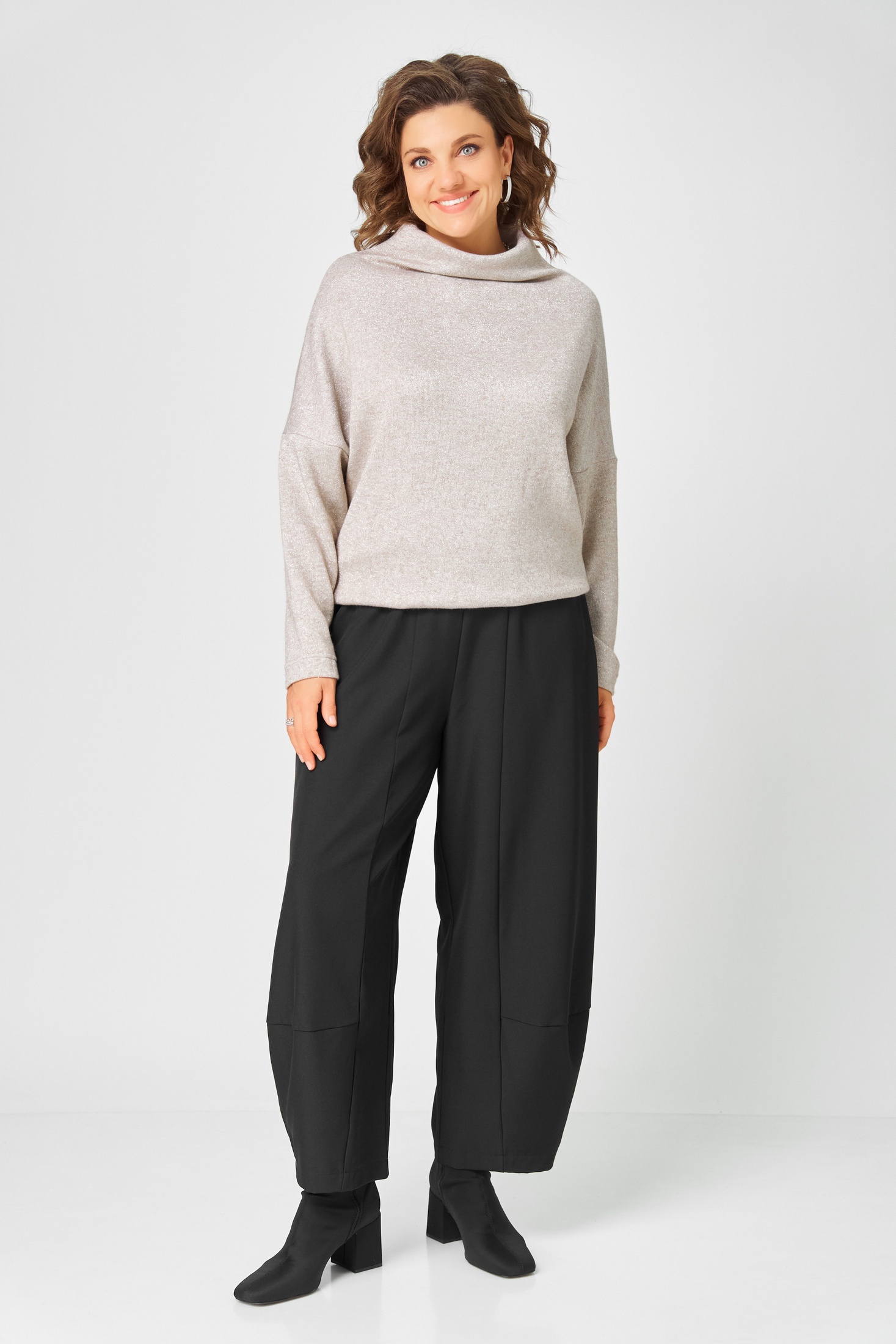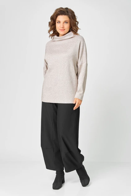 Джемпер прямого кроя с цельнокроеным воротником-стойкой и спущенной линией плеча из приятного к телу трикотажа с люрексом свободного кроя. Укутавшись в наш мягкий джемпер зима будет уютной и тёплой. Рост модели на фото 170 см. Размер на модели 52.
