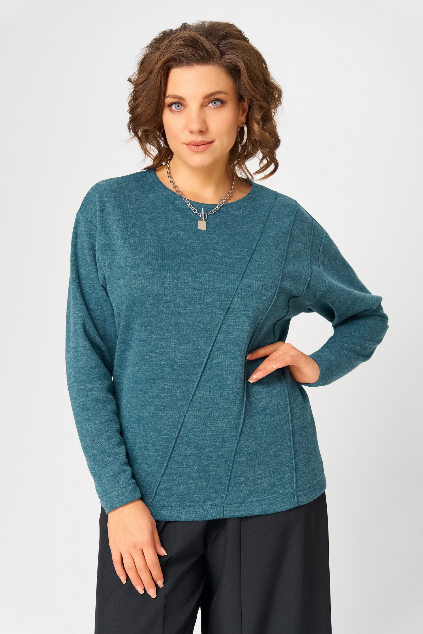 Джемпер женский из приятного к телу трикотажа, свободного кроя, по полочке имеются декоративные строчки. Джемпер имеет округлую горловину, которая создает стильный элегантный образ. Добавьте аксессуары и шикарный лук на каждый день уже создан! Этот свитер станет самым любимым в Вашем гардеробе. В таком женском джемпере вы будете чувствовать себя комфортно везде. Укутавшись в наш мягкий джемпер Вам будет уютно и тепло.