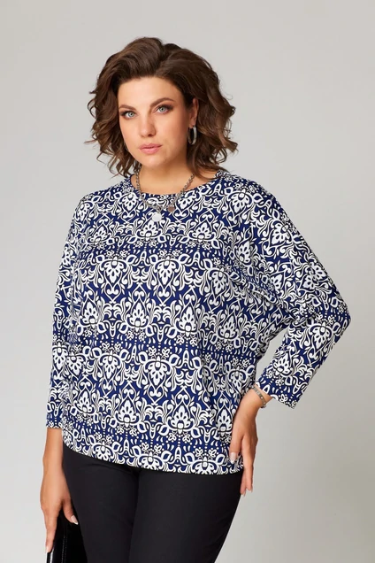 Джемпер 9069 белый + василёк BLISS