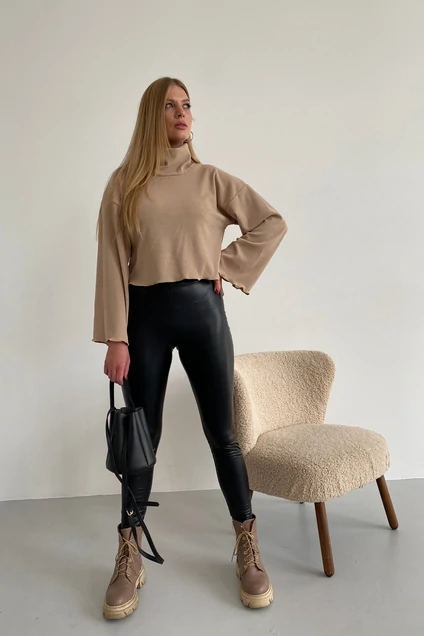 Укороченный свитер из уютного трикотажа. Силуэт - прямой, рукав длинный с расширением к низу. Воротник отложная стойка. Свитер выполнен из приятного на ощупь трикотажа.