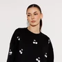 Джемпер из технологичного трикотажного полотна с эффектом peach. Прямого силуэта с втачным рукавом и спущенной линией плеча, с манжетой из довяза по низу. По переду вышито из джинса "LOVE" и в центре буквы "О" в виде сердца настрочена ткань с леопардовым принтом. По горловине и низу изделия планка из довяза.