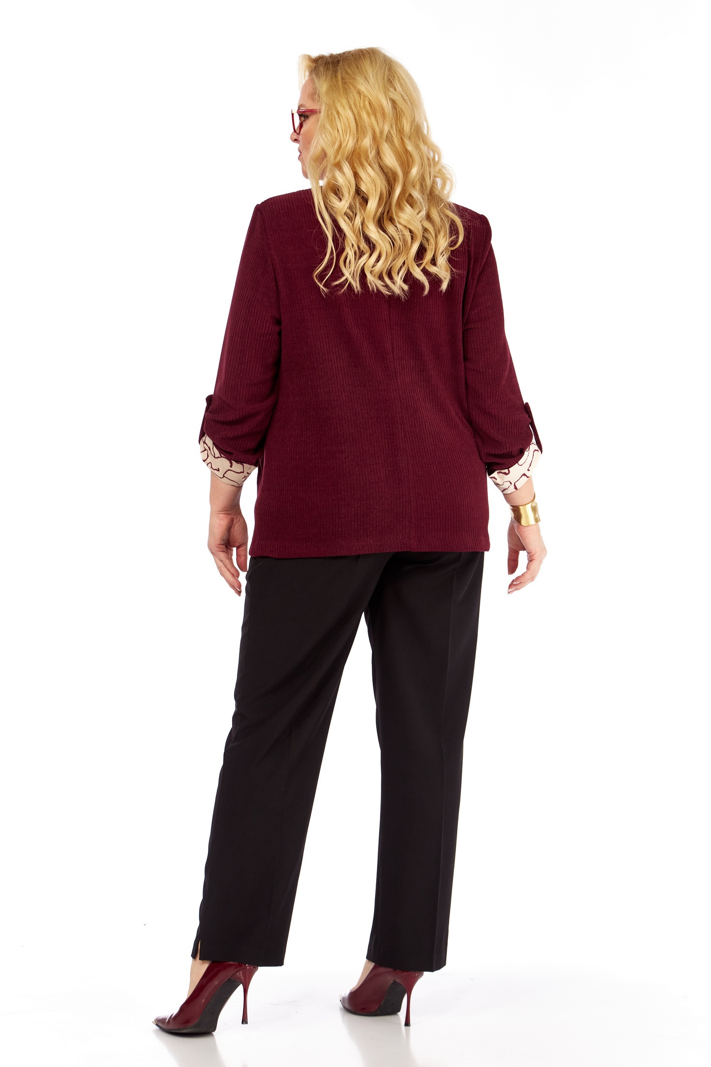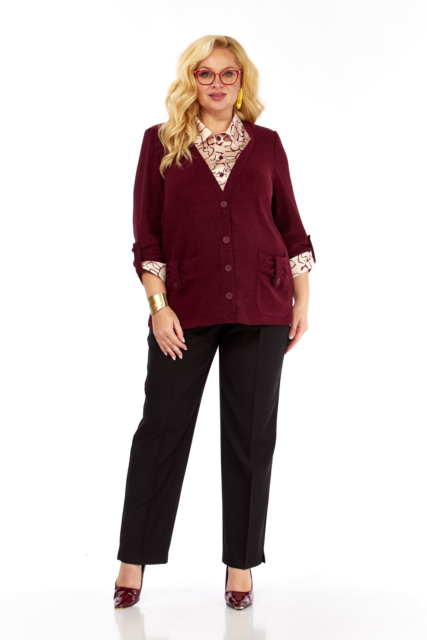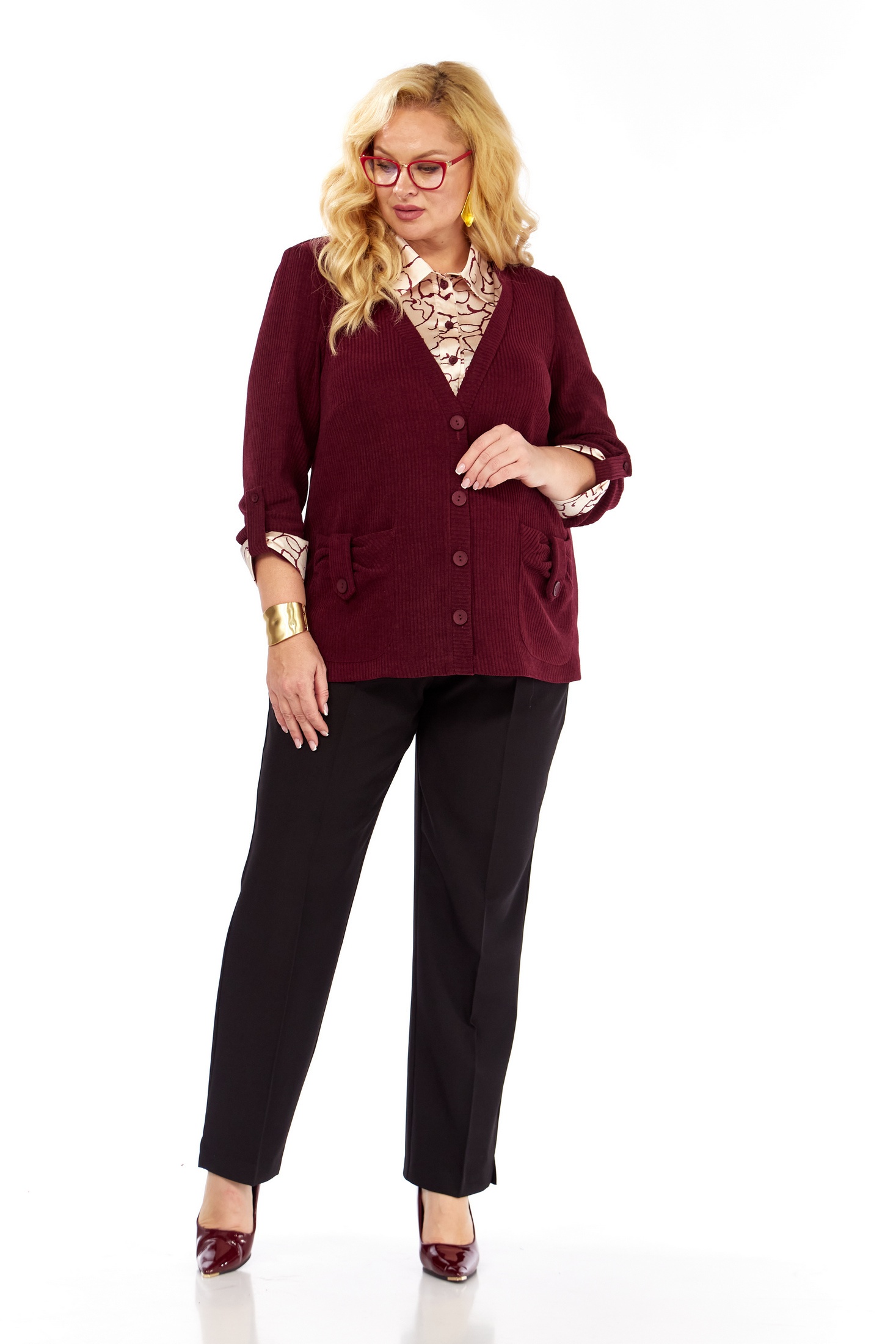 Имитация рубашки под джемпером - это отличный вариант практичной и удобной одежды. Джемпер прямого силуэта, комбинированный, выполнен из мягкого трикотажа и блузочной ткани. Полочка с нагрудными вытачками, накладными фигурными карманами, декорированной патой. Стояче-отложной воротник блузки хорошо смотрится с V-образным вырезом горловины. Рукав втачной, одношовный, с отложной манжетой из отделочной ткани. Пата на рукаве позволяет регулировать его длину.