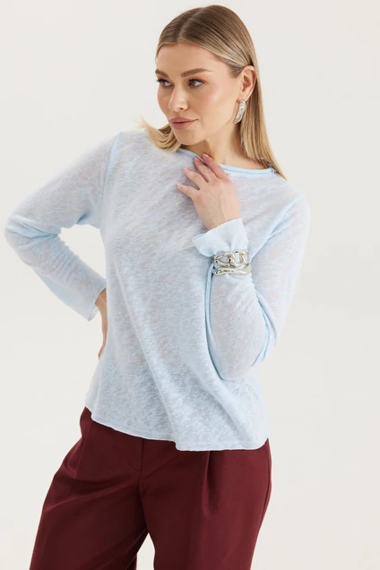 Джемпер 4664 голубой Elady — это идеальное сочетание стиля и комфорта. Коллекция бренда Elady предлагает модель из лёгкой трикотажной полупрозрачной ткани с небесно-голубым оттенком. Этот джемпер с длинными рукавами выполнен из сочетания полиэстера, нейлона и спандекса, обеспечивая максимальную свободу движений. Воздушная текстура с деликатным рельефом придаёт изделию оригинальный вид. Джемпер отлично подходит для создания повседневного образа, легко комбинируясь с классическими и современными элементами гардероба. Его универсальная модель станет отличным решением для весеннего или осеннего сезона. Приятный голубой цвет добавит свежести в ваш образ.