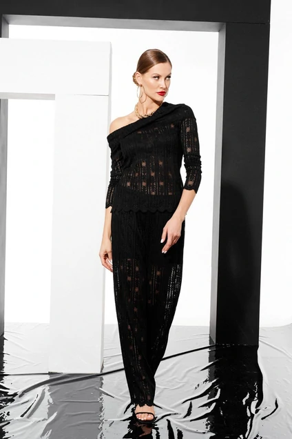 Джемпер женский приталенного силуэта из трикотажного полотна, длиной выше линии бедер. Рукав одношовный 3/4. Вырез горловины декоративный.