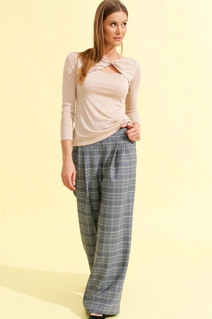 Джемпер прилегающего силуэта из трикотажного полотна длиной до линии бедер. Перед из двух частей: верхней с перекрутом над грудью и нижней прикрывающей грудь и туловище до бедер. Спинка цельная. Рукав длинный втачной одношовный узкий.