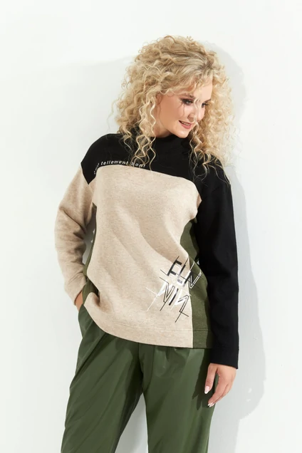 Джемпер 384 бежевый + хаки черный Euro Moda