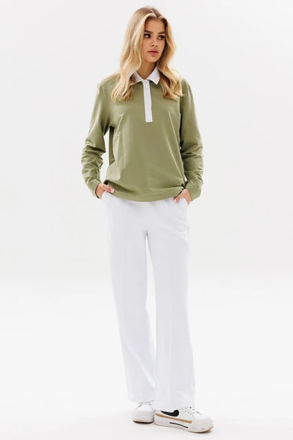 Лонгслив с воротником и застежкой поло: свободный крой; воротник и застежка поло с пуговицами; вышивка-логотип на левой стороне переда.