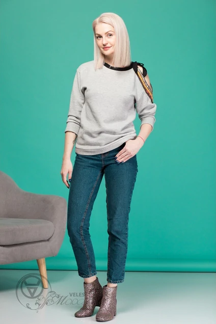 рукав 7/8, плечо декорировано настрочнойвышевкой. горловина переходит в завязку регулирующую высоту плеча