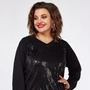 Джемпер женский, изготовленный из трикотажного полотна (футер 3-х нитка петля) прямого свободного силуэта с горловиной стойкой, высотой 9,5см и застежкой на планку на 4 кнопки, со спущенной линией плеча и манжетой по низу изделия. Рукав втачной с манжетой. Спинка изделия без конструктивных элементов. Ширина плеча – 24см, длина рукава – 55см, длина изделия – 68см.