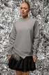 Джемпер прямого силуэта со спущенной линией плеча ,рукав реглан.Перед и спинка с фигурной линией низа ,с одной стороны декорирован тесьмой перья в цвет( сьемные) джемпер длина 63см. ширина по линии груди ,52,54,56,58см. (42,44,46,48рр) ,ширина по низу51,53,55,57см . Длина рукава от горловины 73см
