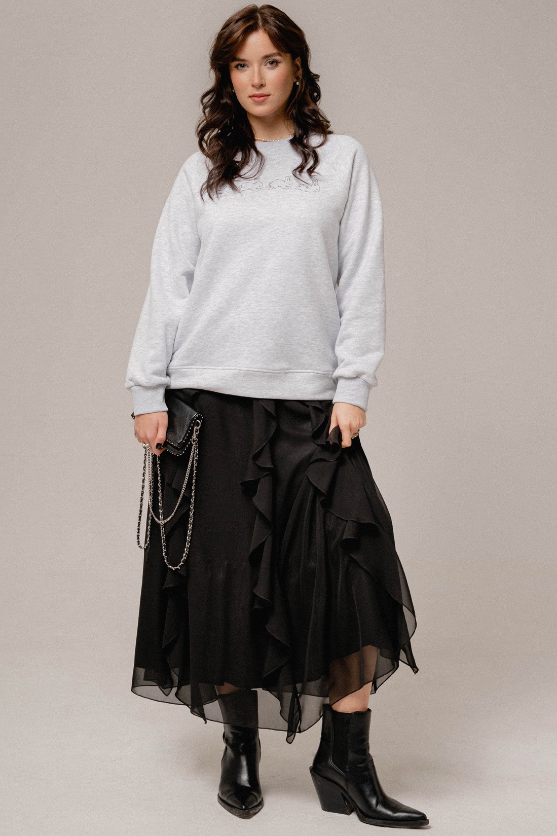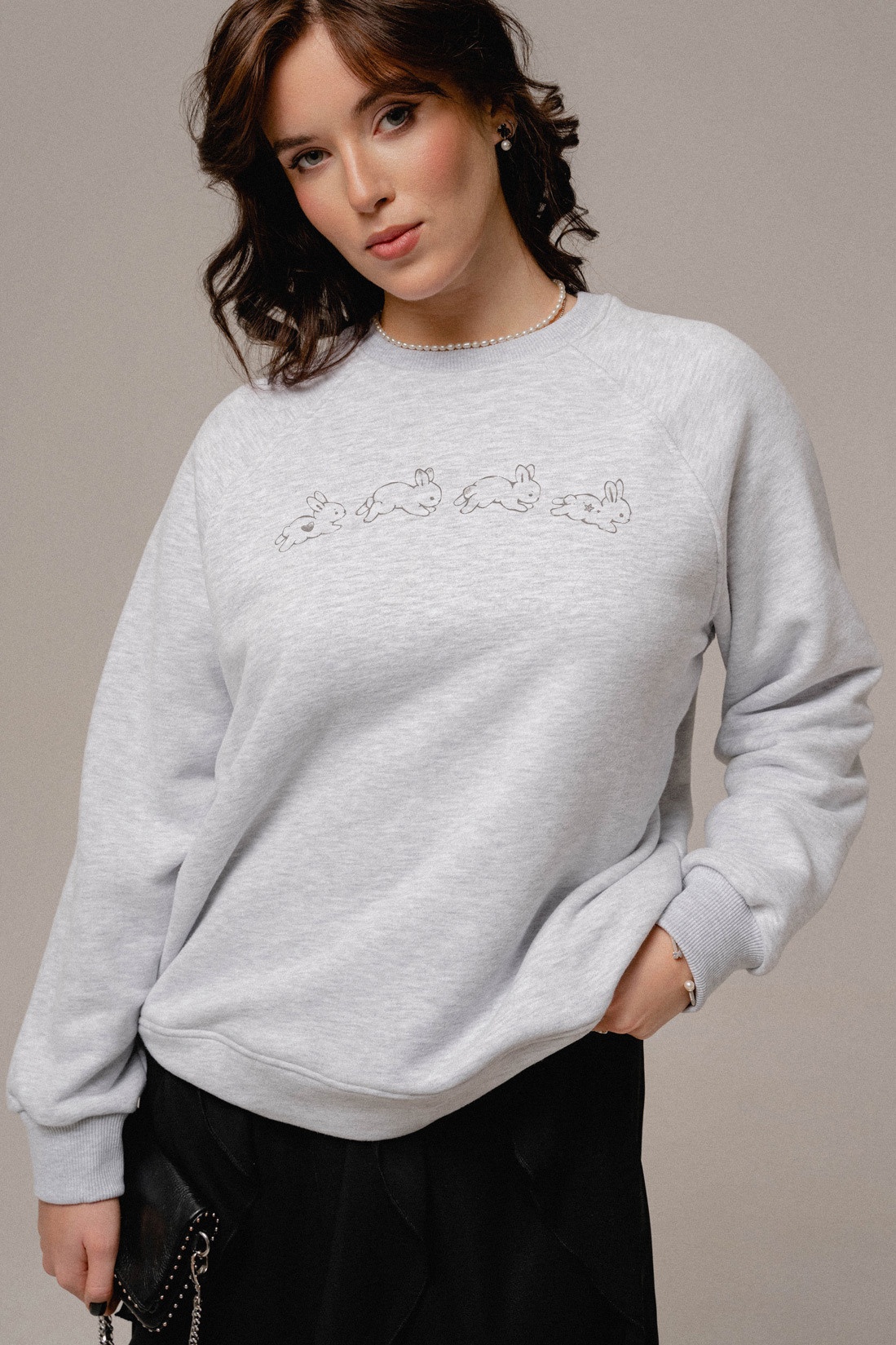 По переду принт "Rabbit" джемпер длина 64см. ширина по линии груди 56,58,60,см. (42,44,46рр) ширина по низу51,53,55см . Длина рукава от горловины 73см