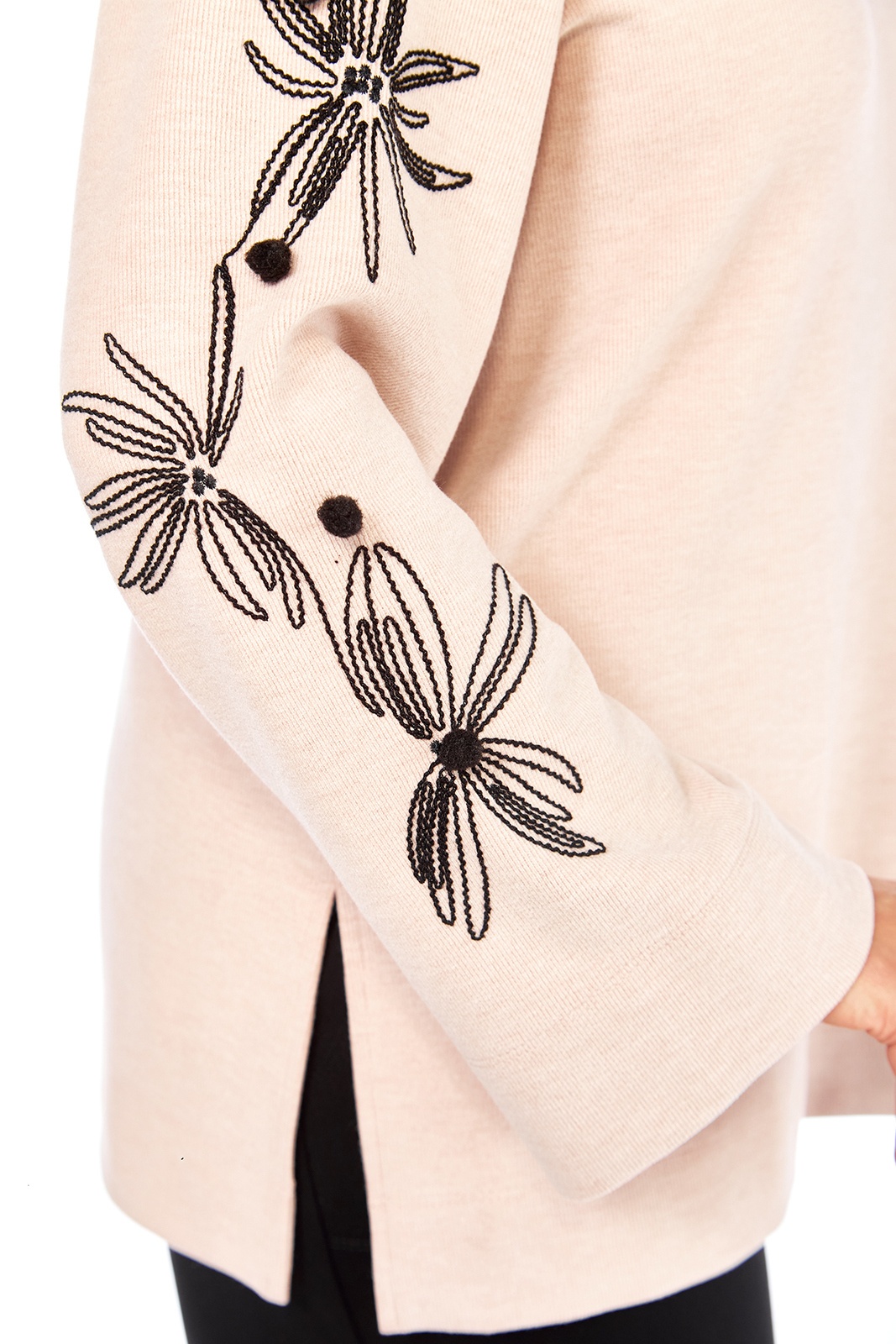 Этот женский джемпер изящно сочетает в себе стиль и комфорт, благодаря своему высококачественному составу из 65% вискозы, 30% полиэстера и 5% спандекса. Он идеально подходит для создания как повседневного, так и более элегантного образа. Джемпер обладает нежным бежевым оттенком, который может немного отличаться на экране. Модель имеет цельнокроеные переднюю часть и спинку, дополненные круглой горловиной, что придает ему аккуратный вид. Особый акцент внимания – это артистично втачные рукава, украшенные эффектными черно-белыми вышивками и изящными помпонами. Длина джемпера по спине составляет 69 см, длина плеча — 10 см, длина рукава — 62 см, что обеспечивает идеальную посадку. Размеры изделия варьируются от р.52 до р.56, с различием в обхвате груди и бедер, что позволяет подобрать идеальный размер для каждой фигуры. Этот джемпер будет прекрасным выбором для тех, кто ценит качество и уникальность в деталях одежды.