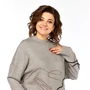 Джемпер женский, свободного кроя, изготовлен из трикотажного полотна. Горловина обработана воротником — стойкой по переду спинке и рукаву вышивка шнуром. В боковых швах внизу — разрезы. Рукава спущенные длинные.