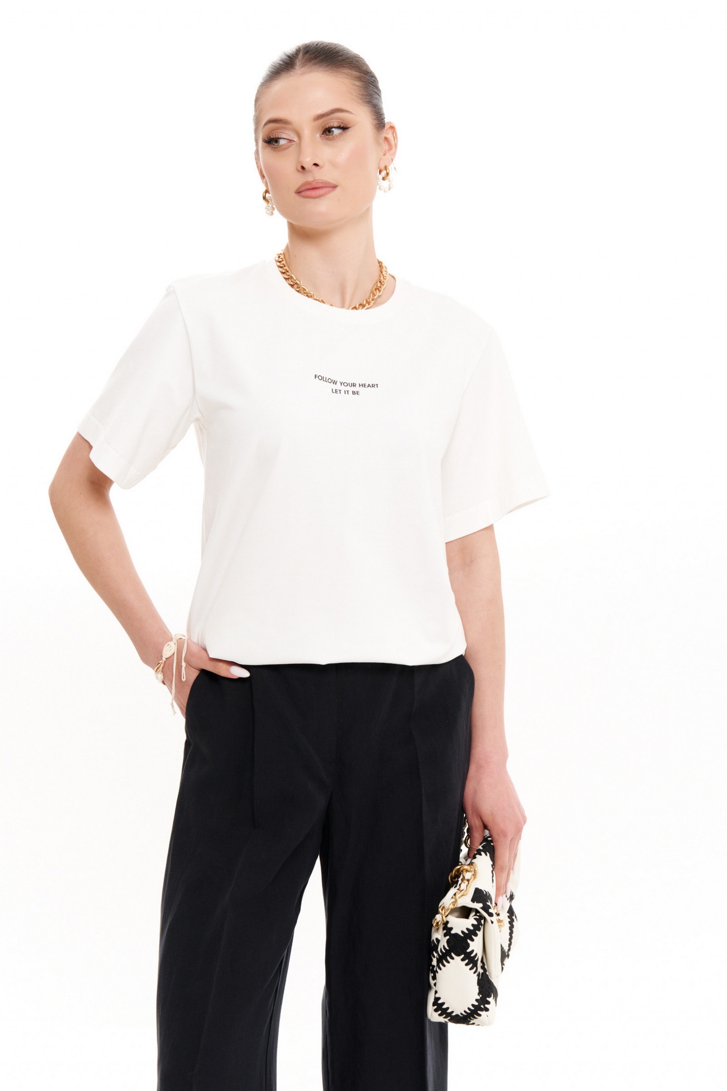 Джемпер женский из поливискозной ткани для повседневной носки. Джемпер прямого силуэта. Перед имеет дизайнерскую печать в виде надписи. Горловина чуть расширена, обработана притачной тесьмой. Рукава втачные, длинной на уровне локтя. Стильный джемпер в молочном оттенке, который отлично подойдет под любой ваш образ и будет радовать ваш глаз. Данный джемпер отлично будет сидеть на любой фигуре и подчеркивать все ваше изящество.