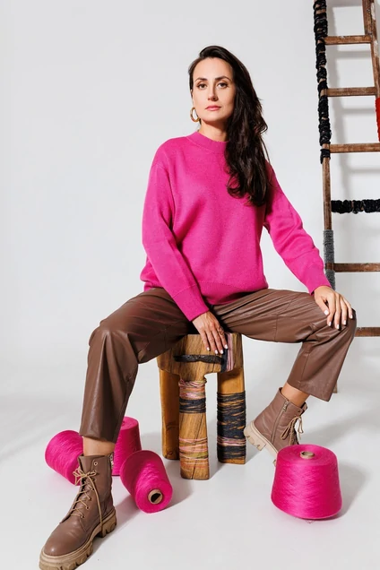 Трикотажный джемпер прямого силуэта, с перепадом длины по переду и спинке. Рукава длинные. Яркий и удобный джемпер для повседневной носки. Можно носить как с брюками, так и с джинсами. Джемпер для тех, кто привык одеваться модно и стильно, но при этом чувствовать себя комфортно и уверено в себе. Джемпер выполнен из итальянской пряжи, с энзимной обработкой, благодаря этому он не колется и очень приятный на ощупь.