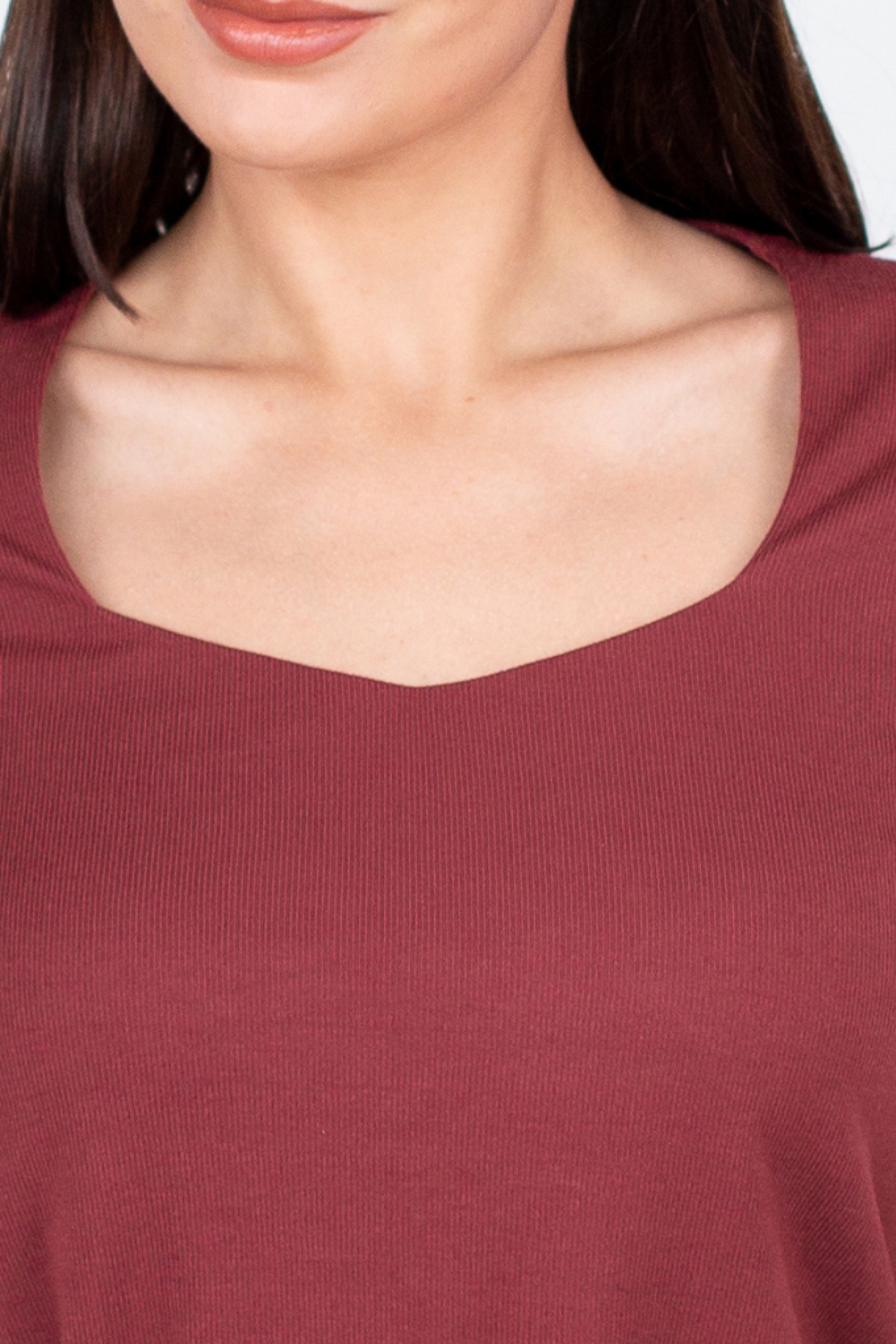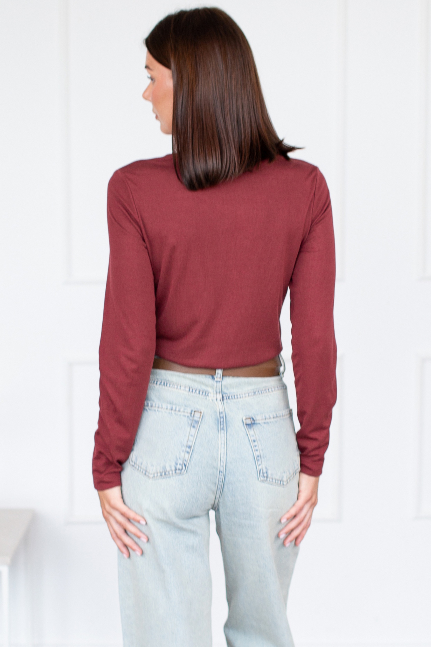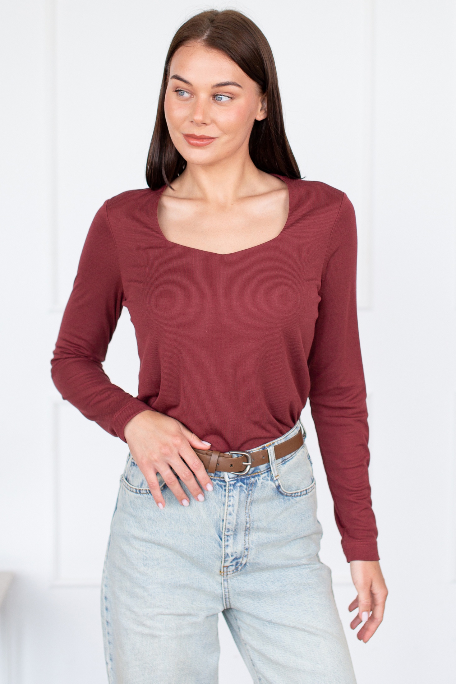Элегантный женский джемпер тёмно-бордового цвета представляет собой идеальное сочетание стиля и комфорта. Изготовленный из высококачественного двуластичного материала, этот джемпер обеспечивает превосходную посадку и удобство при носке. Дизайн джемпера включает в себя длинные рукава и элегантный углубленный круглый вырез, подчеркивающий шею. Гладкая фактура ткани и минималистичный крой делают его идеальной базой для любого гардероба. Это универсальное изделие, подходящее как для повседневного, так и для более формального образа.