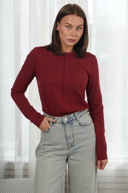 Обновите ваш гардероб этим стильным джемпером в насыщенном бордовом цвете. Изготовленный из мягкого и комфортного материала, джемпер приталенного кроя идеально подчеркивает силуэт. Оснащенный длинными рукавами и классическим круглым вырезом, этот элемент гардероба отлично сочетается как с джинсами, так и с юбками. Небольшой карман на груди добавляет практичности и шарма. Незаменимый вариант для создания как повседневных, так и более элегантных образов.