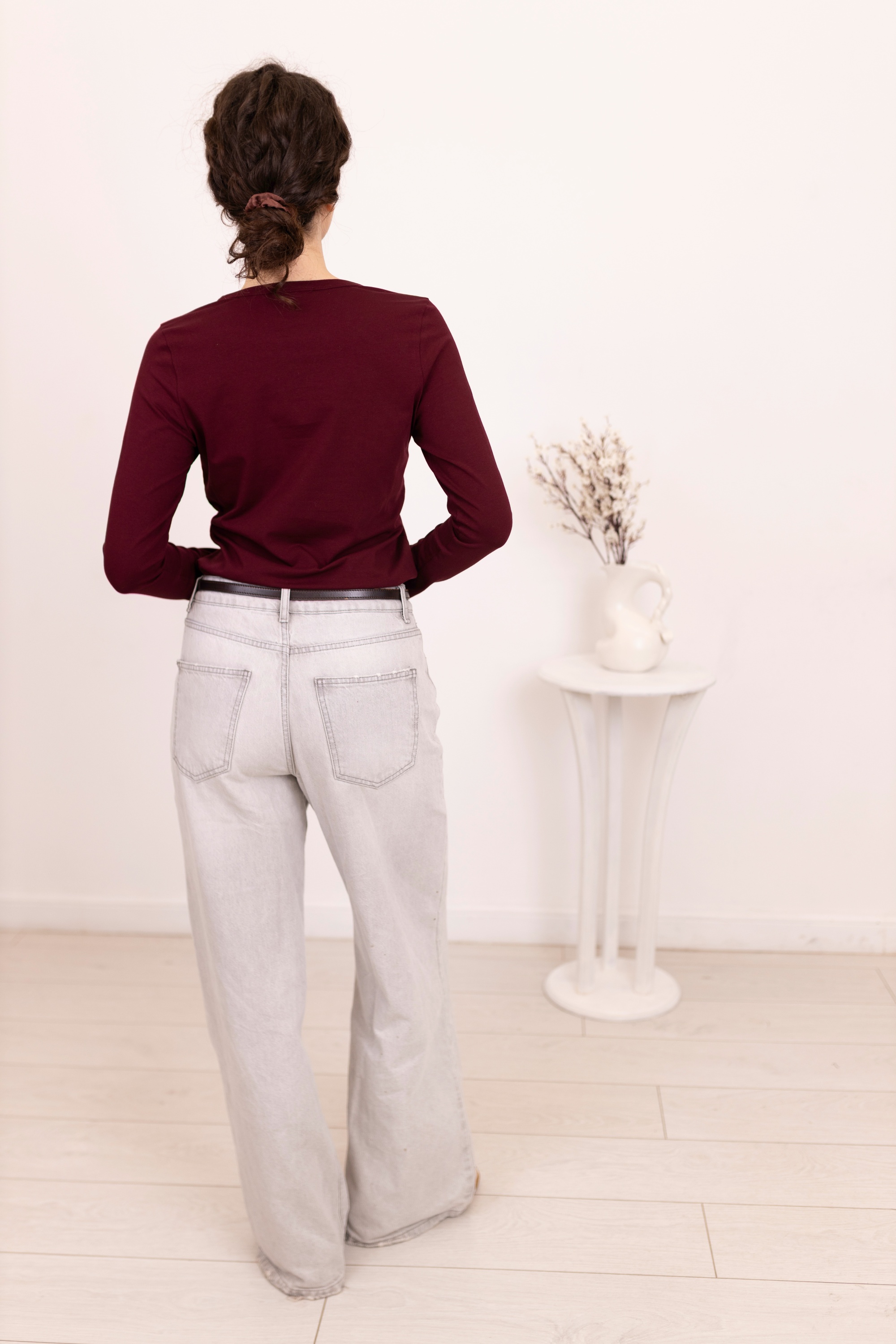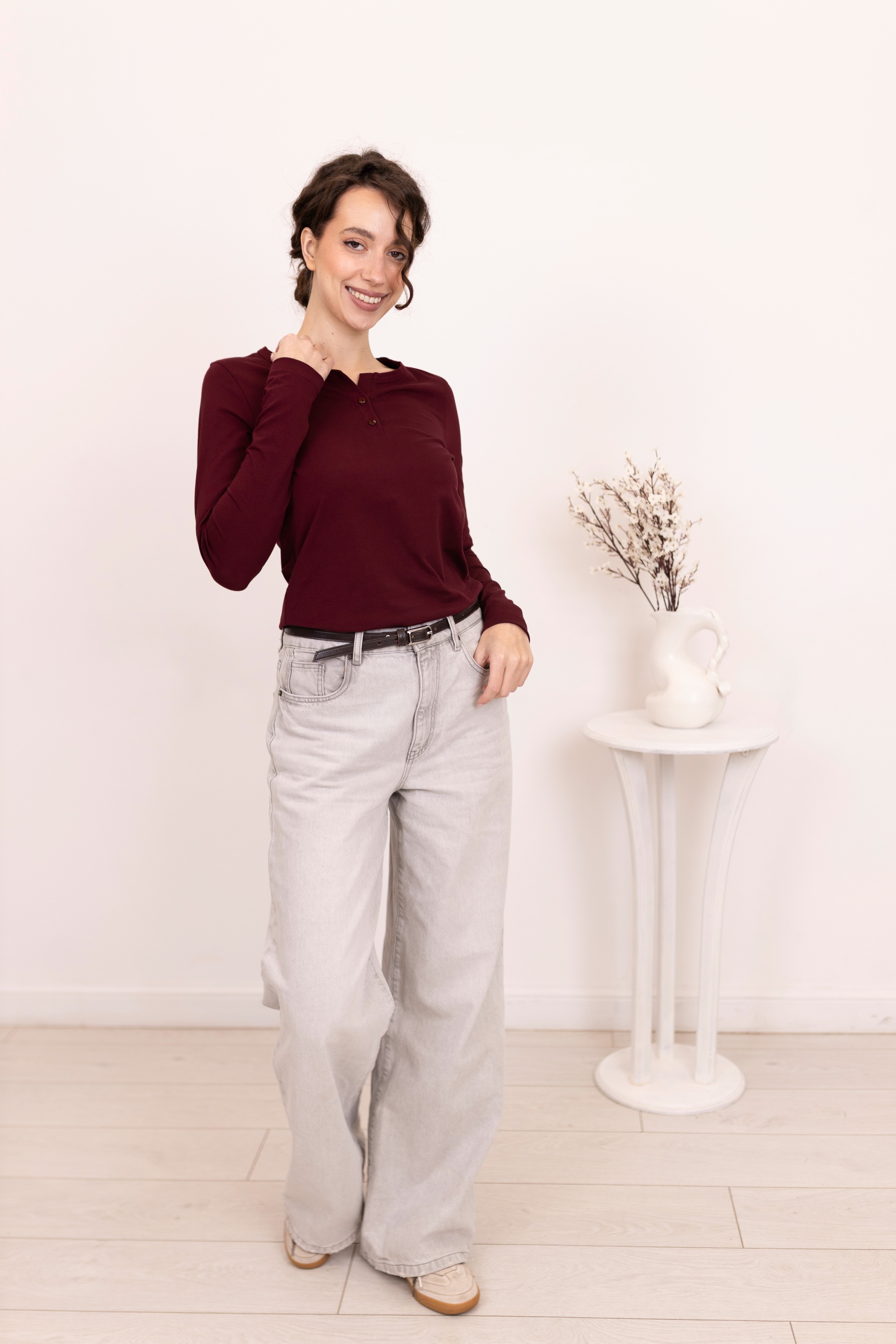 Элегантный джемпер темно-винного цвета — отличный выбор для осенне-зимнего гардероба. Модель с длинными рукавами и минималистичным дизайном придает образу скромную изысканность. Воротник-стойка и небольшая планка с пуговицами на груди добавляют аккуратный акцент, делая этот джемпер универсальным вариантом для разнообразных случаев — от офисных встреч до дружеских посиделок. Гладкая ткань обеспечивает комфортное ношение на протяжении всего дня.