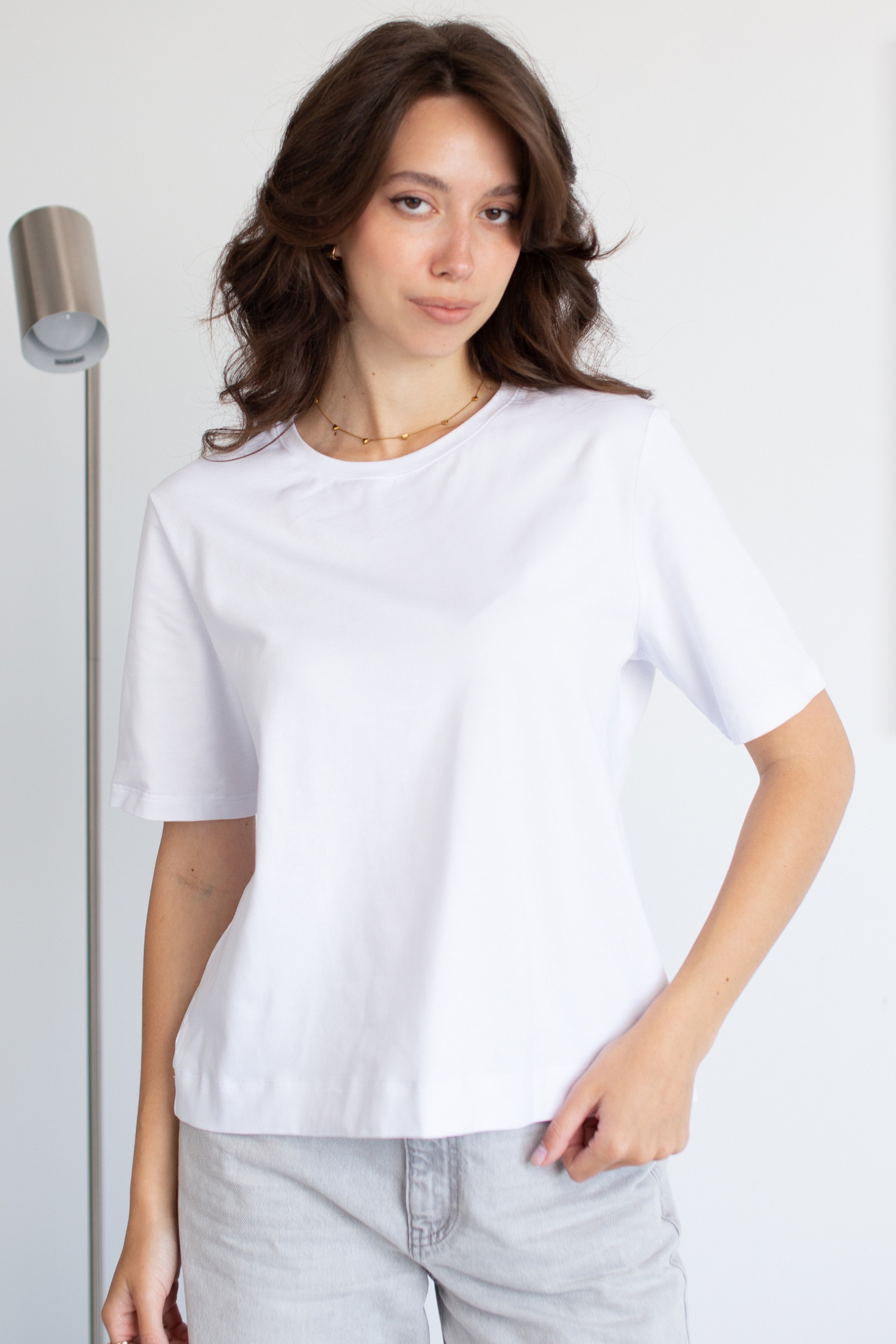 Элегантный белый женский джемпер представлен в минималистичном стиле, подходящем для создания универсального гардероба. Модель с короткими рукавами и удобным круглым вырезом подчеркивает лаконичность дизайна. Особенностью данного джемпера является его слегка свободный крой и умеренно удлиненная спинка, что добавляет современное ощущение комфорта и стиля. Выполненный из качественной ткани, он обеспечивает приятные тактильные ощущения и простоту в уходе, идеален для повседневного использования в различных комбинациях.