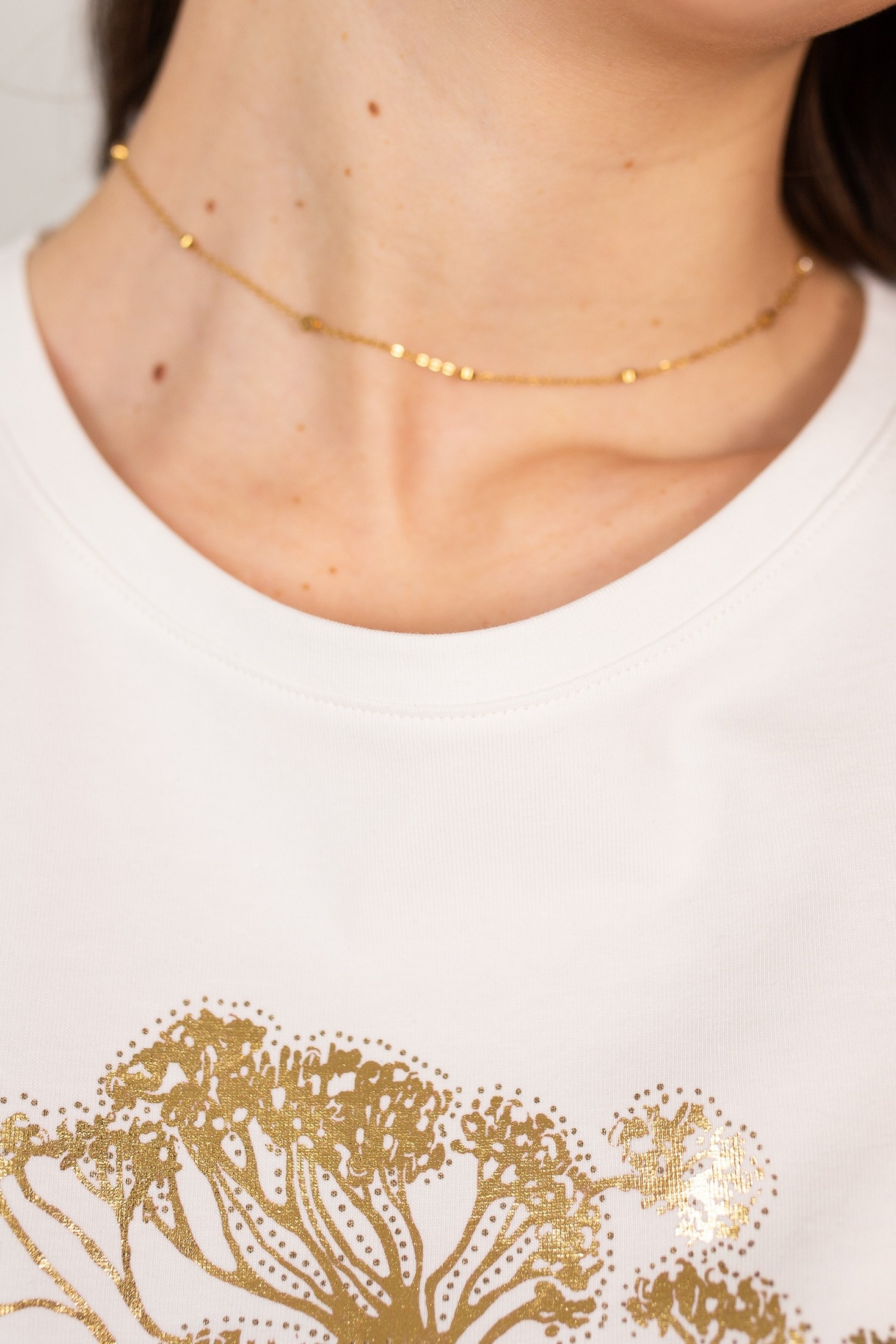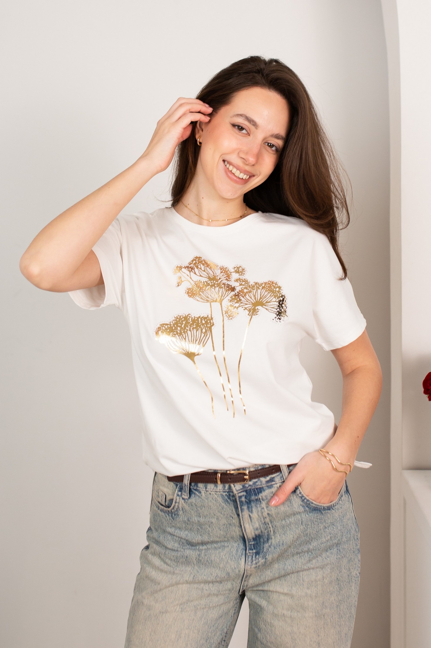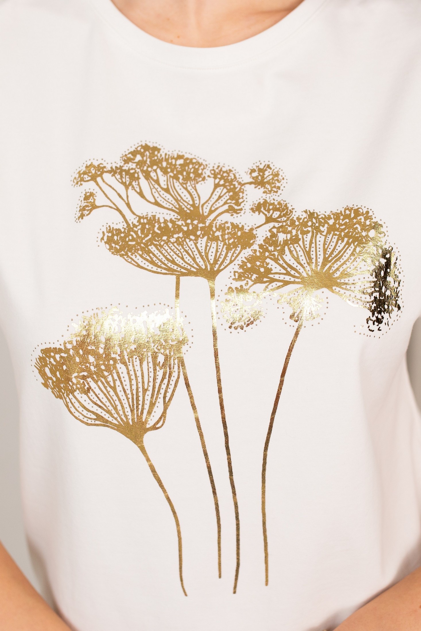 Джемпер 699604 КУПАЛИНКА — идеальный выбор для повседневного гардероба. Коллекция бренда КУПАЛИНКА предлагает стильное сочетание комфорта и элегантности. Изделие выполнено из хлопка с добавлением полиуретана, что обеспечивает мягкость и устойчивость к износу. Белый цвет джемпера в сочетании с деликатным золотым принтом придает образу свежесть и легкость. Джемпер подходит для теплого сезона и идеально сочетается с джинсами или юбками. Круглый вырез добавляет классическую нотку, а стандартное размещение рукавов делает его подходящим для любой фигуры. Этот джемпер станет отличным дополнением к вашему повседневному образу.