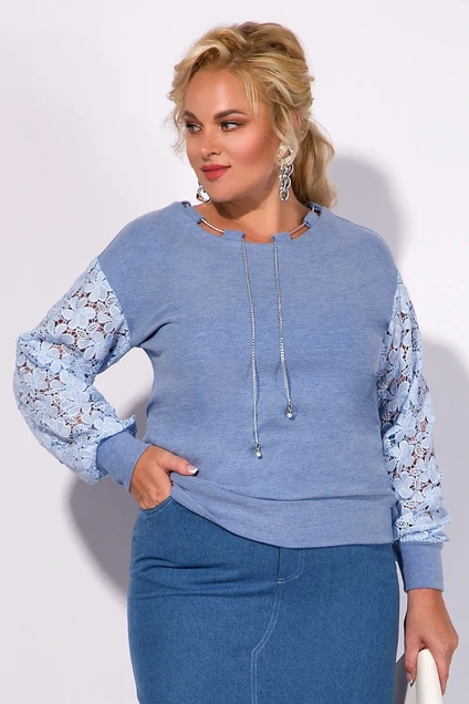 Эффектный джемпер из мягкого трикотажа, дополнен шикарными рукавами из хлопкового кружева! Вырез горловины округлый с декором виде цепи с бусинами! При желании ее можно снять! Низ изделия, а также низ рукава обработан мягкими манжетами. Изюминкой данной модели служит кружевная спинка с v-образным вырезом! Элегантный джемпер не оставит Вас незамеченной и станет Вашей любимой одеждой не только на осенний период, но и в любое время года. Мягкий, удобный, поможет чувствовать себя комфортно везде: на работе, на шоппинге, в поездке. Длина джемпера – около 60 см., рукав – 63 см.