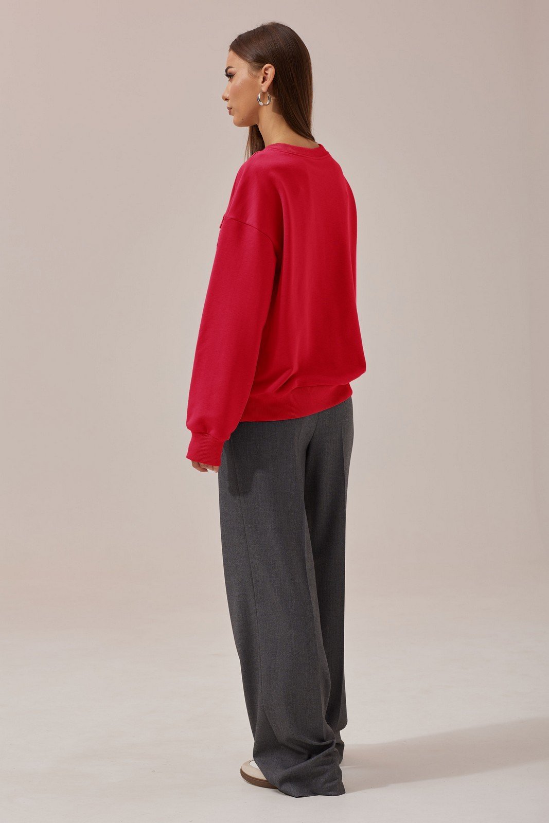 Джемпер прямого силуэта с притачным поясом по низу из трикотажного полотна. Горловина округлая с притачной планкой. Джемпер со спущенным плечом, рукав одношовный втачной с притачным манжетом по низу. По переду дизайнерская вышивка. Длина джемпера: (44-48р - 63см)(50-54р - 65см)(56-60р - 67см)