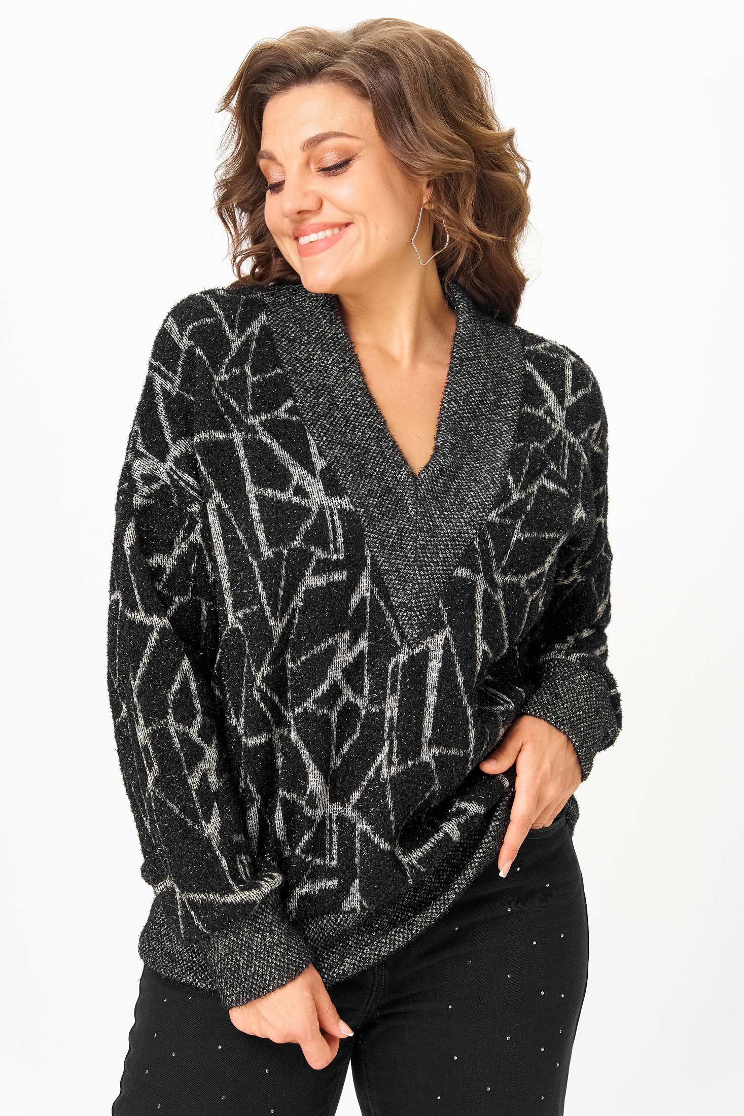 Этот джемпер — про эффект, который работает без усилий. Графичный дизайнерский рисунок, благородный блеск люрекса и комфортный крой делают его универсальной вещью для стильных городских образов.