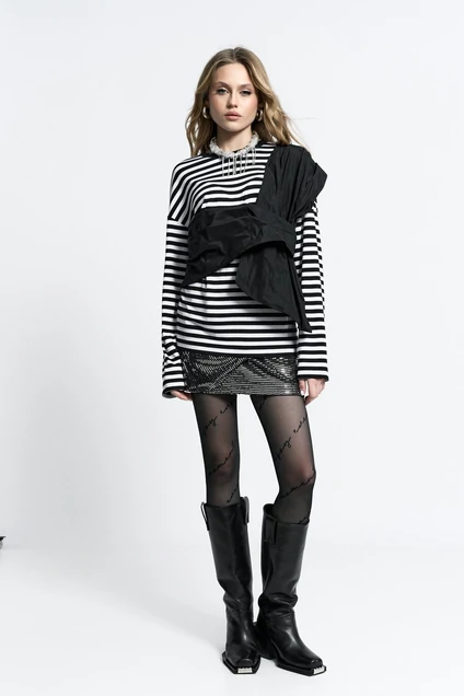 Тельняшка свободного кроя, из вискозы, с декоративным бантом из держащей форму тафты. Размеры S(42-46) M(48-52).