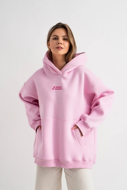 Модель one size. Утеплённый Худи изготовлен из качественного турецкого трикотажа. Ткань тёплая и приятная на ощупь , не пилингуется, с изнанки на флизе. Толстовка со спущенной линией плеча, свободного силуэта, с двойным капюшоном, по переду карман по типу “кенгуру”. Крой oversize позволяет чувствовать себя в нем очень комфортно и стильно! Вышивка спереди“Be unique Be yourself” (будь уникальным, будь самим собой) выделяет его среди других и выполнена с особой тщательностью.Мы примерили эту толстовку на самые разные фигуры: от 42 до 56, и она всегда выглядит великолепно.