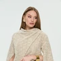 Джемпер прямого свободного силуэта. Горловина с цельнокроеным воротником-стойкой. Рукав втачной широкий, три четверти. В комплект входит съёмная авторская брошь-цветок ручной работы.