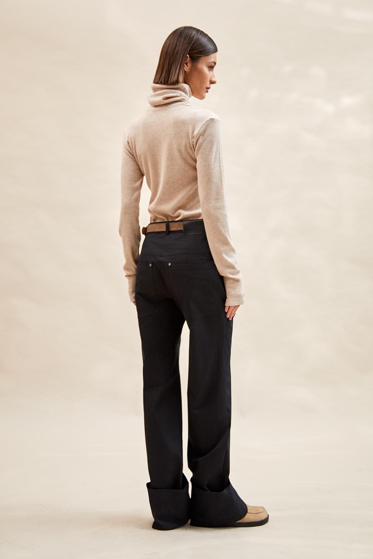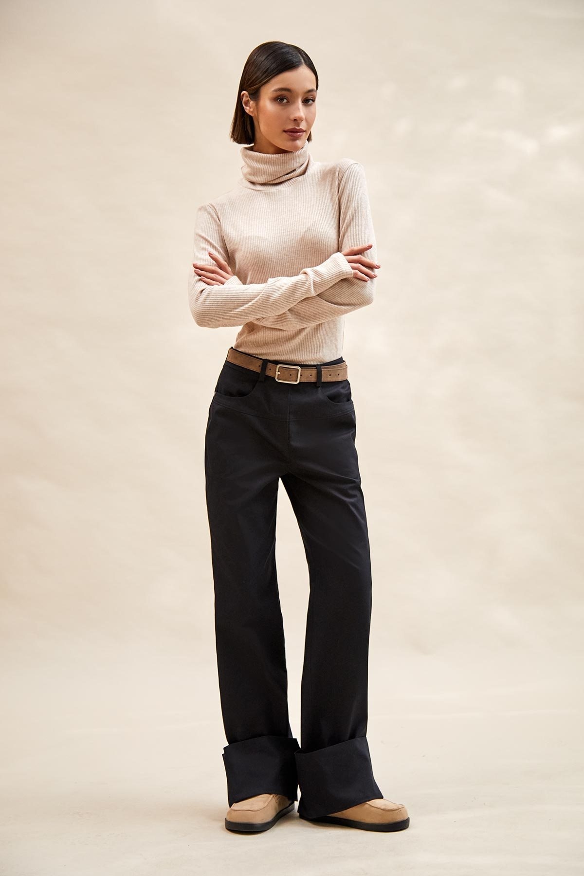 - высокий воротник-стойка с мягкой драпировкой на шее.