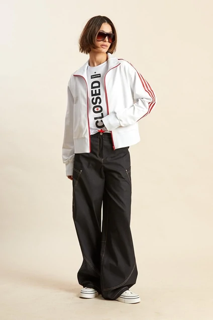 Джемпер 3109-1 белый Rivoli сочетает в себе современный дизайн и комфорт. Коллекция бренда Rivoli предлагает джемпер из высококачественной ткани футер двухнитка, предназначенный для создания повседневного и спортивного образа. Прямой силуэт и спущенная линия плеча подчеркивают расслабленный стиль. Джемпер оснащен спереди молнией для удобства, а прорезные карманы с тонкими листочками добавляют функциональности. Эластичные манжеты и воротник из рибаны обеспечивают комфорт и сохранение формы. Широкие лампасы с печатными полосками проходят вдоль рукавов, добавляя модный акцент. Белый цвет идеально вписывается в любой гардероб, делая его универсальной вещью для весенне-летнего сезона.