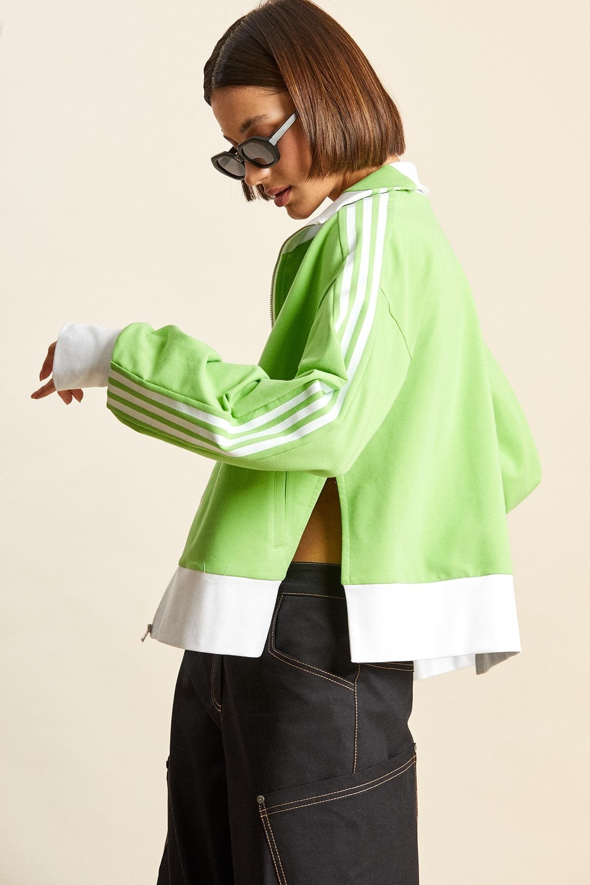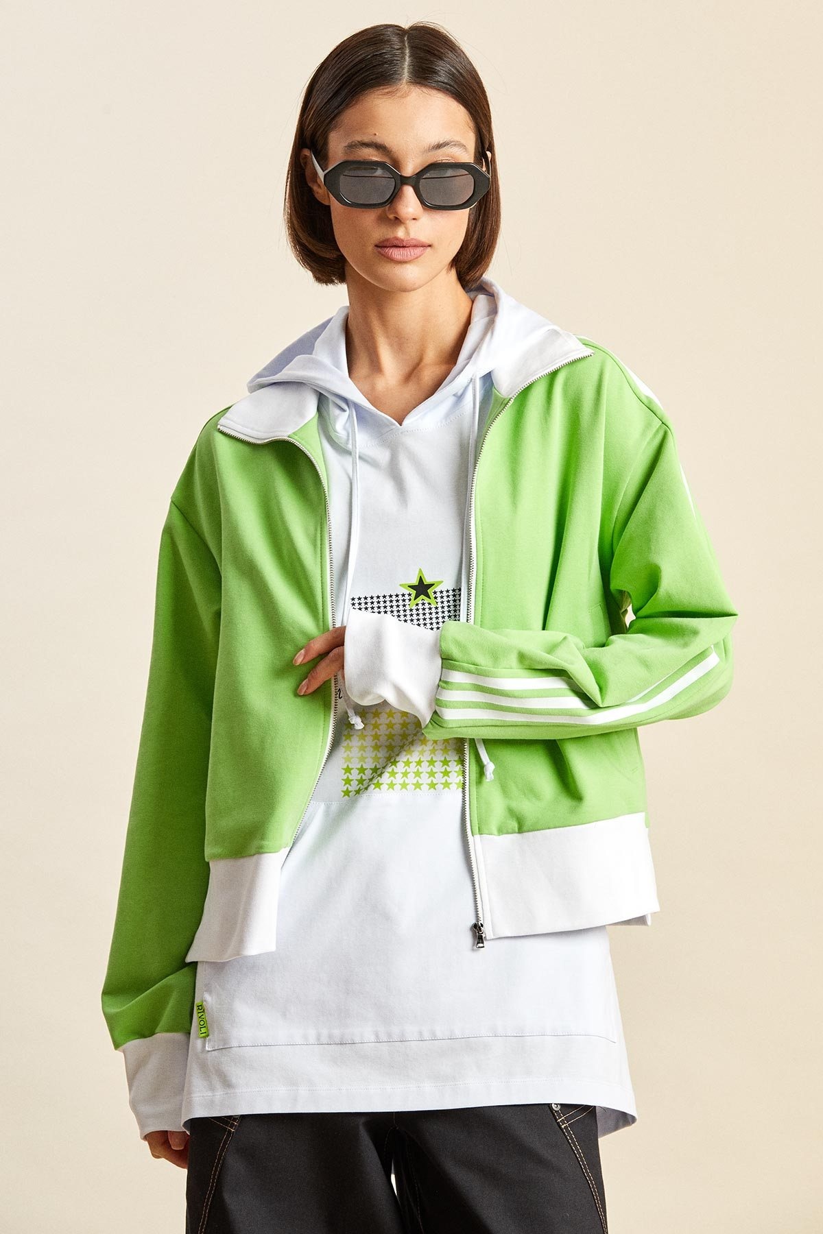 Джемпер 3109-2 салатовый Rivoli — это удачное сочетание комфорта и стиля. Коллекция бренда Rivoli представляет этот джемпер, выполненный из лёгкого и дышащего футера двухнитки с добавлением эластана для большего комфорта. Прямой силуэт с заниженной линией плеч и высоким боковым разрезом обеспечивает свободу движений, в то время как застежка-молния спереди добавляет практичности. Детали, такие как прорезные карманы с тонкими листочками и широкие лампасы с печатными полосками вдоль рукавов, акцентируют спортивный стиль изделия. Манжеты и воротник из рибаны придают завершённый вид. Этот джемпер идеален для весны и осени, добавляя яркий салатовый оттенок в ваш повседневный гардероб.